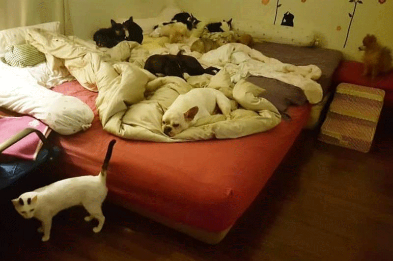 “ตอนนี้บ้านที่กรุงเทพฯ มีหมา แมว ไก่ รวม 20 ตัว แมว 2 หมา 14 ไก่ 2 ไก่ไข่ 2 ตัวที่อยู่กรุงเทพฯ มีทั้งเลี้ยงเองและรอหาบ้าน แต่ผมว่าพอมันโตก็หมดโอกาสมีบ้านใหม่แล้ว ธรรมชาติของสัตว์โตก็ไม่มีใครอยากเลี้ยง ก็ต้องเลี้ยงไว้เอง