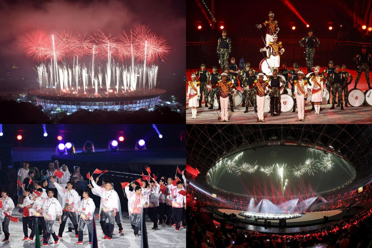 การแสดงแสง สี เสียงและพลุไฟตระการตาในพิธีปิดการแข่งขันกีฬาเอเชี่ยนเกมส์ ครั้งที่18 ที่ประเทศอินโดนีเชีย ท่ามกลางความประทับใจของผู้ที่เข้ามาร่วมชม และมีสายฝนโปรยปรายมาอย่างต่อเนื่อง โดยเจ้าภาพ เอาใจวัยรุ่นดึง ซูเปอร์จูเนียร์ บอยแบนด์เกาหลีร่วมโชว์