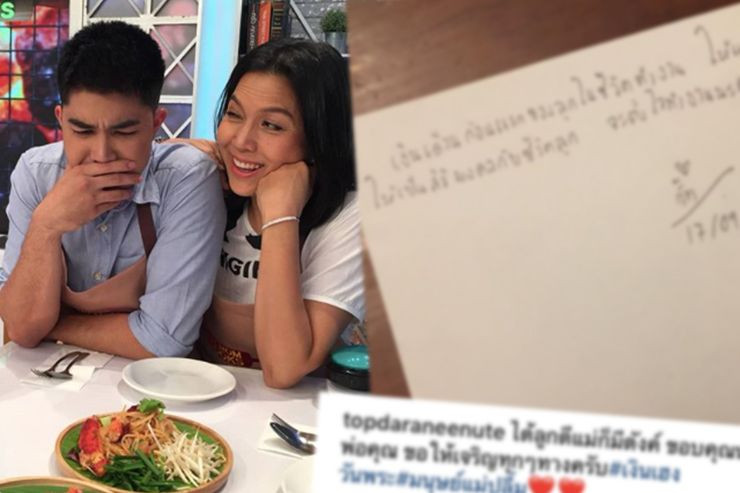 เพราะล่าสุดหนุ่ม “กั๊ท” ได้นำเอาเงินเดือนที่ทำงานได้เดือนแรก ใส่ซองมาให้ “แม่ท็อป” พร้อมเขียนข้อความว่า "เงินเดือนก้อนแรกของลูกในชีวิตทำงาน ให้แม่นะครับ ให้เป็นสิริมงคลกับชีวิตลูก จะตั้งใจทำงานนะครับ”