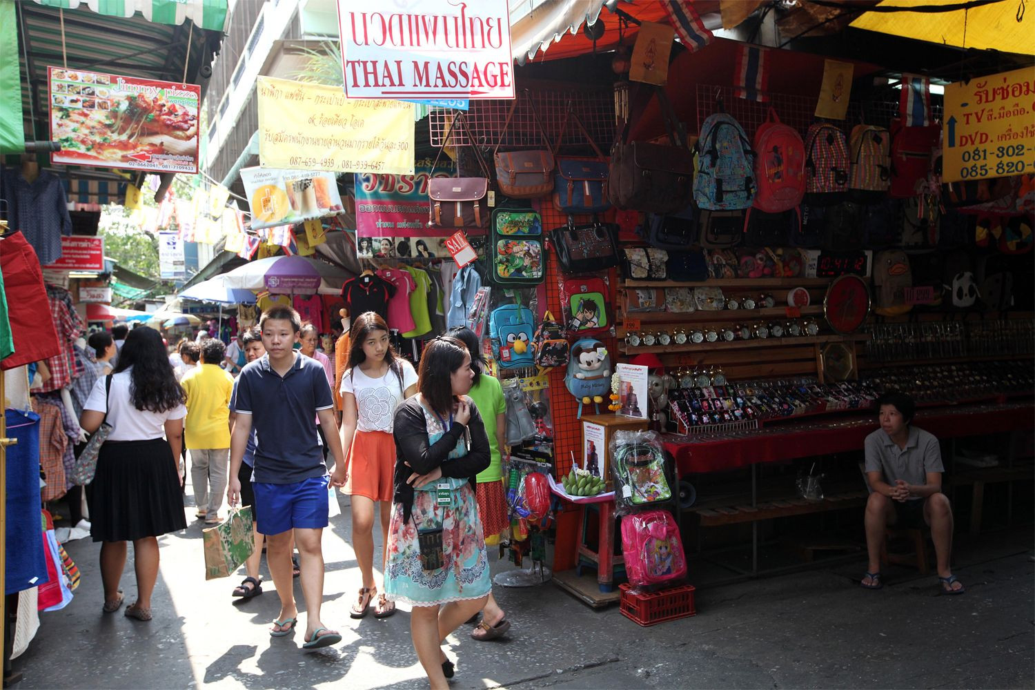สินค้าที่วางขายก็มีตั้งแต่ของใช้ส่วนตัวไม่ว่าจะเป็น เสื้อผ้า กระเป๋า รองเท้า จนถึงแกดเจ็ตรุ่นใหม่ๆ แถมราคายังสามารถต่อรองกันได้ ส่วนร้านค้าร้านอาหารที่มีชื่อเสียงก็มีหลายร้าน เช่น ร้านเบเกอรี่ขนมปังวังหลัง มากันแบบไส้ทะลักทะล้น แนะนำไส้ลูกเกด และไส้หมูหย็องอร่อยจนลืมไปเลยว่ายังอ้วนอยู่