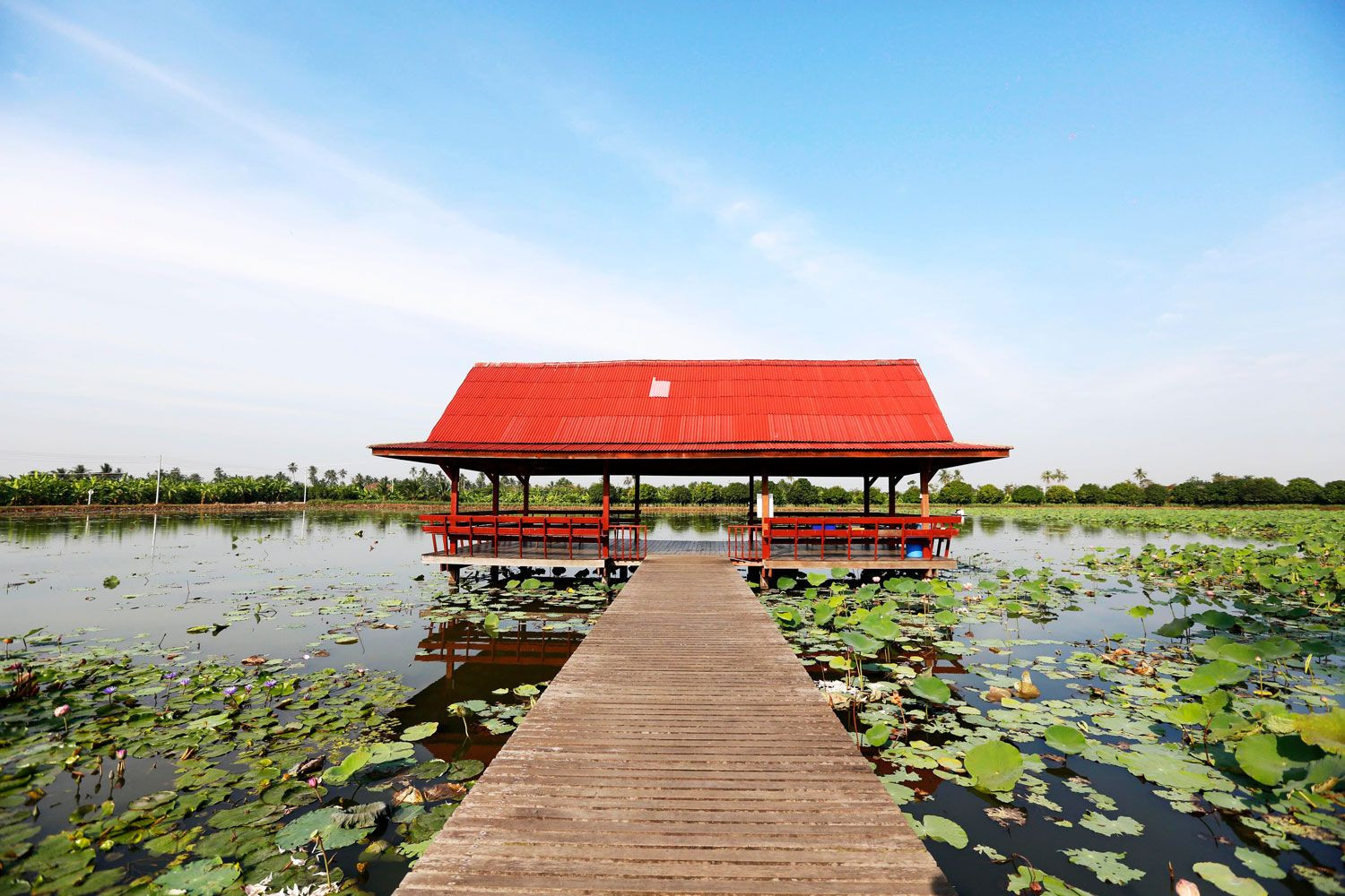 จุดแรกที่เรือล่องไปคือ นาบัวลุงแจ่ม พื้นที่ปลูกบัวสัตตบงกชสีชมพู ซึ่งมีจุดเริ่มต้นจากการไม่พอกิน เนื่องจากแต่เดิมชาวบ้านมีอาชีพทำนาปีละครั้งทำให้เกิดความยากจนและบางคนต้องขายที่ดินทำกินของตัวเอง เมื่อไม่พอกินชาวบ้านจึงเริ่มทำการเกษตรทฤษฎีใหม่ตามแนวทางของในหลวง รัชกาลที่ 9