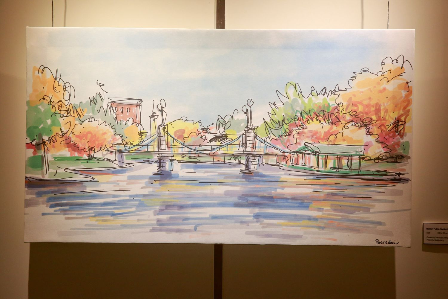 พอมาอยู่อเมริกาก็ได้กลับมาวาดรูปจริงจังอีกครั้ง ลงลายเส้นด้วยปากกาหมึกก่อน แล้วค่อยวาดสีน้ำ งานจะไม่เหมือนมาก เป็นอารมณ์สเกตช์แล้วดูสบายตา โครงสร้างจริง แต่ลดรายละเอียด