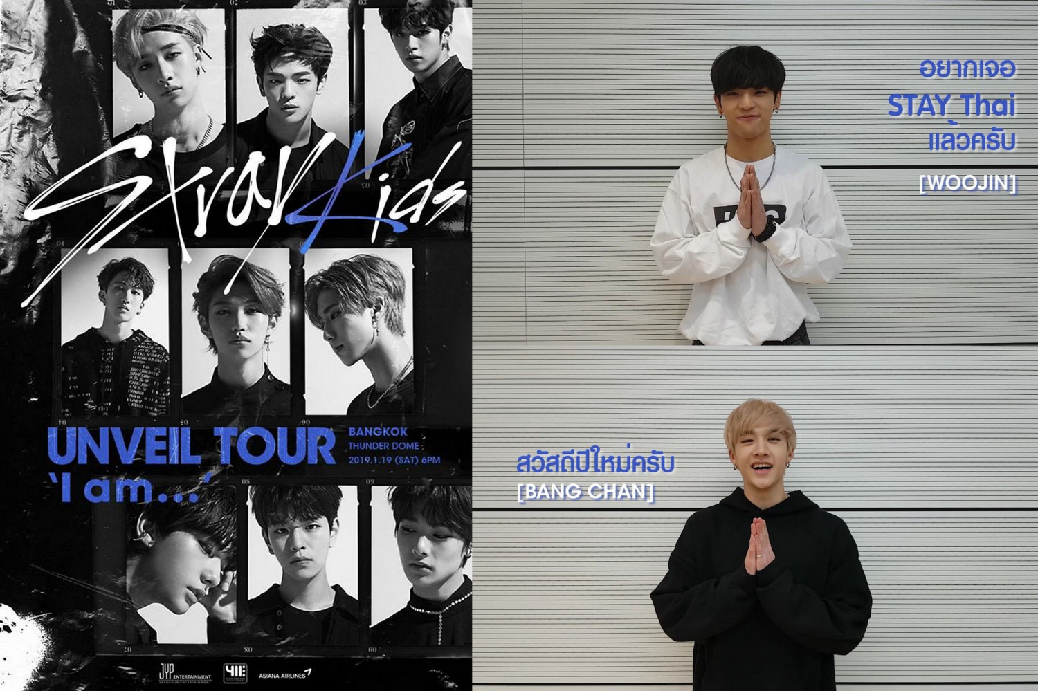 เตรียมตัวต้อนรับการมาเยือนเมืองไทยอย่างเต็มรูปแบบ เต็มอิ่ม เต็มโชว์ ครั้งแรกของ “สเตรย์คิดส์” (Stray Kids) รุกกี้บอยกรุ๊ปมาแรงที่สุดของเกาหลีใต้นาทีนี้ ล็อกคิวไปรับน้องใหม่ด้วยตัวเองในงาน “สเตรย์คิดส์ อันเวล ทัวร์ ‘ไอ แอม ...’ อิน แบงคอก” (Stray Kids UNVEIL TOUR ‘I am ...’ in BANGKOK) วันเสาร์ที่ 19 มกราคม 2562 เวลา 18:00 น. ณ ธันเดอร์โดม เมืองทองธานี