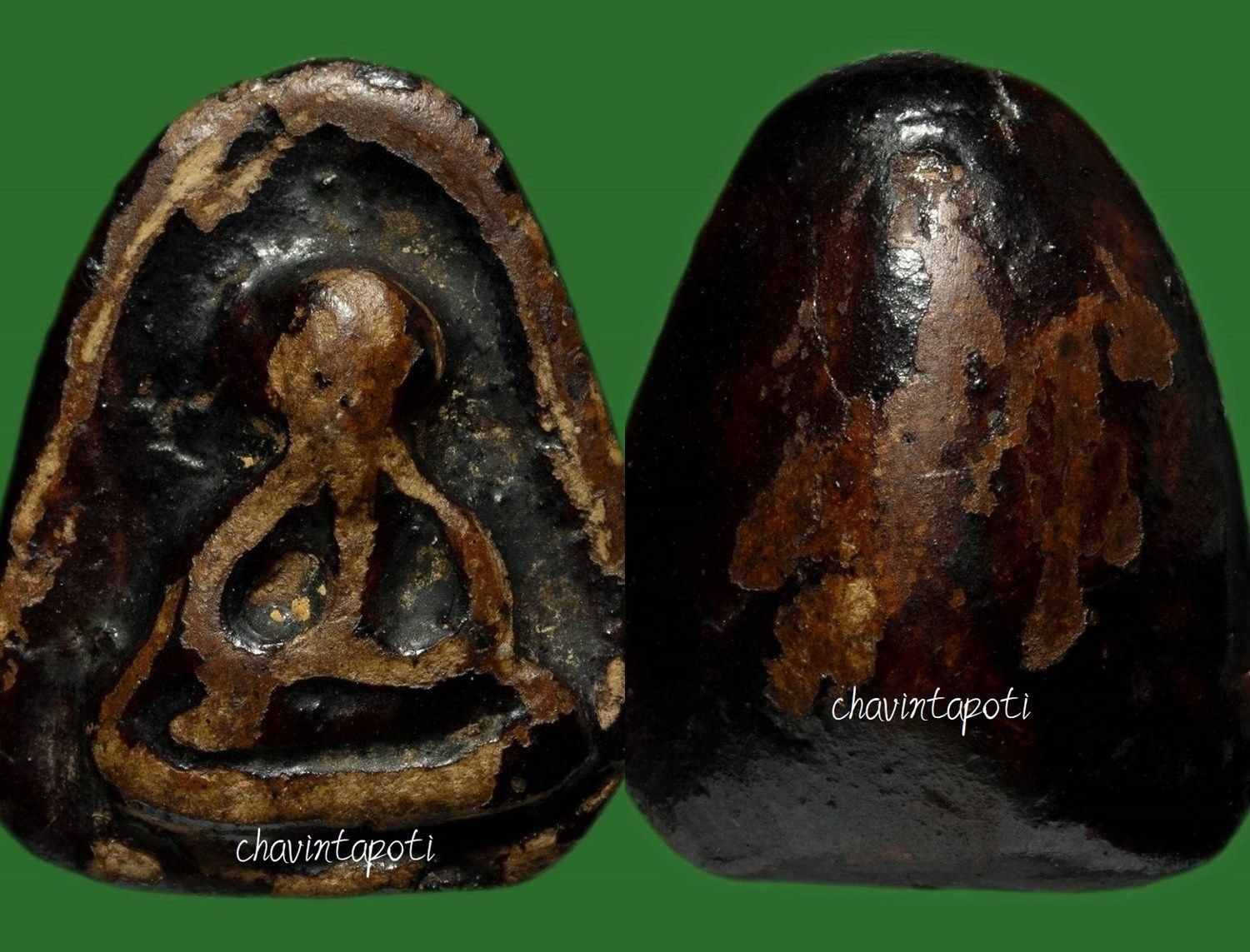 ส่วนที่สัมผัสกับเหงื่อจนรักหลุดร่อนออกไป จะเห็นเนื้อจัดจ้านมันวาวอมเหลืองจนเหมือนสีน้ำตาลเข้มเหมือนผิวกะลาขัดทีเดียว และเนื่องจากพระปิดตาของหลวงปู่จีนสร้างทีละองค์นอกเหนือจากพิมพ์แล้ว เราจึงต้องดูธรรมชาติจากเนื้อหาของพระเป็นหลักครับ พระทุกองค์จะไม่เหมือนกันขึ้นอยู่กับการเก็บรักษาพระของแต่ละคน และการใช้งานที่ต่างกัน