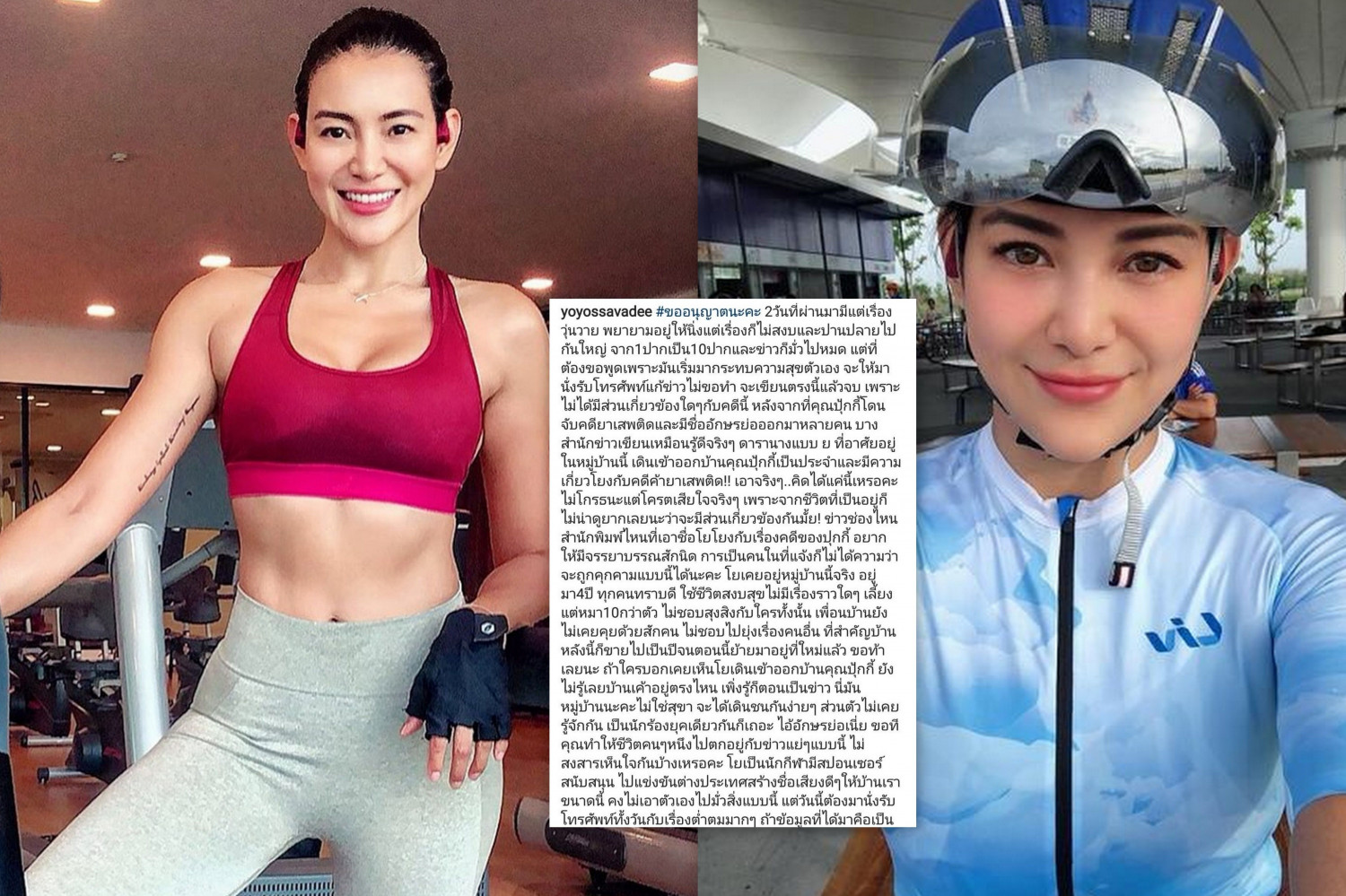 "แต่วันนี้ต้องมานั่งรับโทรศัพท์ทั้งวันกับเรื่องต่ำตมมากๆ ถ้าข้อมูลที่ได้มาคือเป็นแบบนี้ บอกเลยคงจับไม่ได้หรอกค่ะคนชั่วเนี่ย! ขอร้อง ข่าวแบบนี้อย่าเอาโยไปยุ่งเกี่ยว นางแบบในข่าวจะเป็นใครไม่ทราบ แต่ไม่ใช่โย พูดสั้นๆคนรักกีฬาไม่มั่วยาเสพติดนะคะ!!! ใครอ่านแล้ว ขอให้พิจารณาดูเลย ว่าสิ่งที่คุณเห็นมันเป็นไปได้มั้ย! ส่วนเรื่องงานไม่มีผลกระทบเลยค่ะ สปอนเซอร์รับทราบตัวตนของโยดี ตรวจเลือดเช็คสุขภาพตลอด หลังจากนี้ถ้ามีการโยงถึงมาอีก จะขอดำเนินคดีตามกฏหมายนะคะ เตือนแล้วนะ"