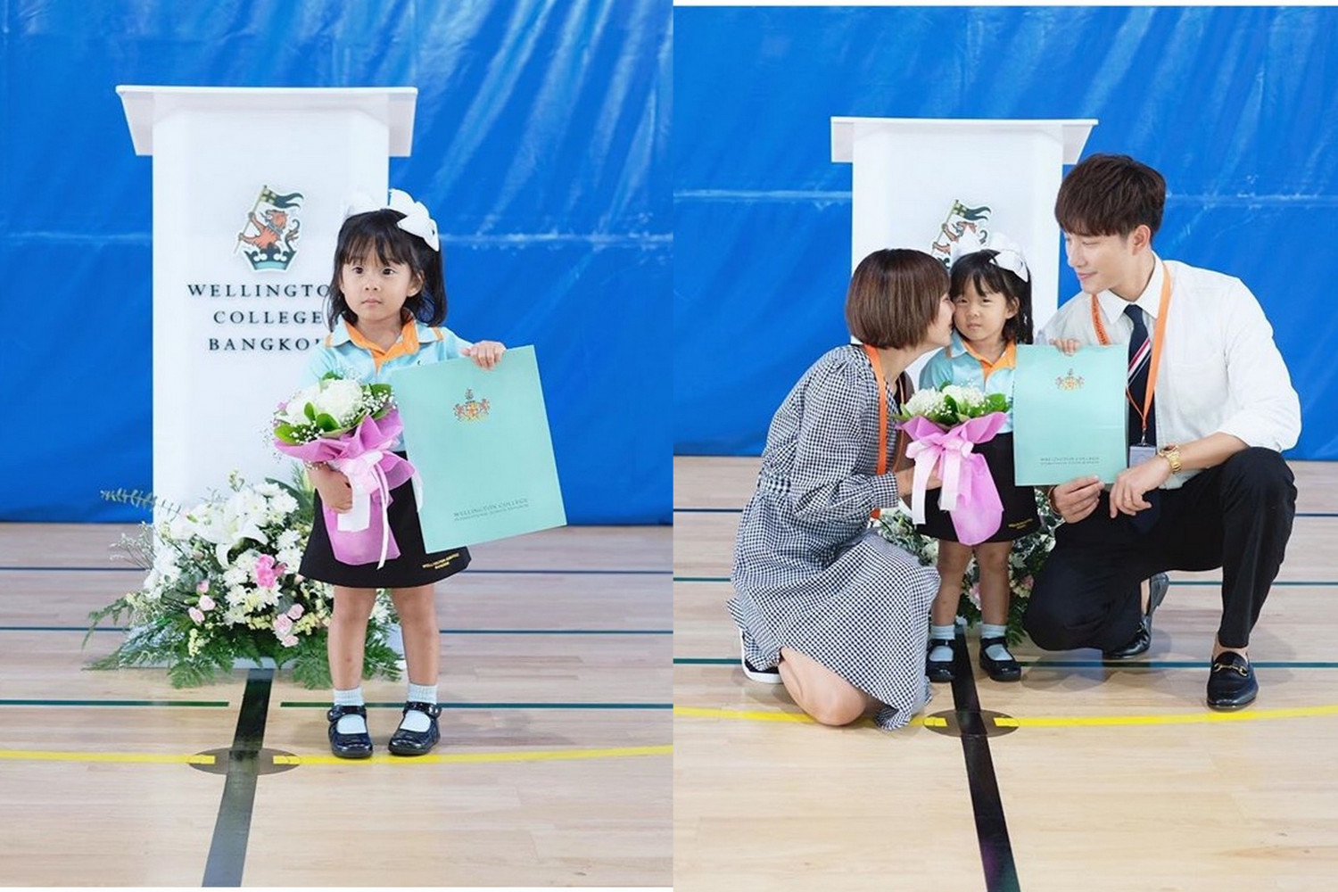 หลังจากที่ส่งลูกสาวสุดที่รักเข้าโรงเรียนนานาชาติมาได้ครึ่งปี กุ๊บกิ๊บ สุมณทิพย์ และบี้ เคพีเอ็น ก็เป็นปลื้มหนักมาก เพราะพัฒนาการของเป่าเปาดีขึ้นมาก แถมในวันจบการศึกษาชั้นเตรียมอนุบาล จากโรงเรียนนานาชาติเวลลิงตัน คอลเลจ น้องเป่าเปา ยังได้รับใบประกาศนียบัตรจากการเข้าร่วมกิจกรรมต่างๆ ของโรงเรียน ทำให้บ้านที่เป่าเปาอยู่ได้รับเหรียญรางวัลเพิ่มขึ้นด้วย