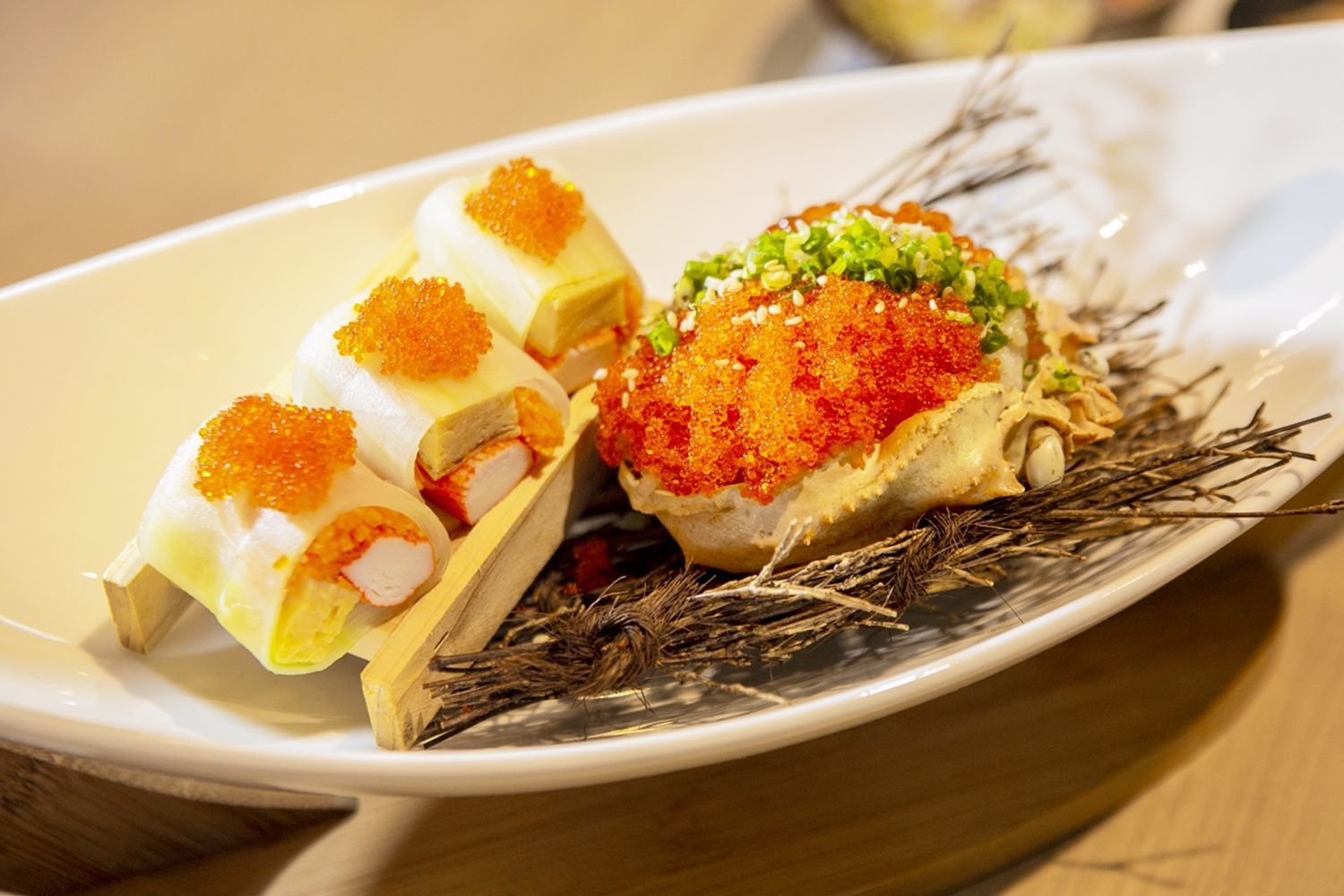 ปิดท้ายด้วยเมนูใหม่อย่าง Kani Shiso Ikura ลิ้มรสสุดละมุนกับข้าวญี่ปุ่นคลุกมันปู โรยหน้าด้วยไข่กุ้ง ได้รสเค็มๆ มันๆ ตัดเลี่ยนด้วยโรลล์แตงกวากรุบกรอบ และเมนู Spider Salad สลัดผักไฮโดรโปนิกส์และปูนิ่มทั้งตัวทอดจนกรอบ อัพความอร่อยด้วยสาหร่ายไคโซสีเขียว-แดง ราดน้ำสลัด Shiso สูตรลับเฉพาะของทางร้านที่รับรองว่าถูกปากคนไทยอย่างแน่นอน