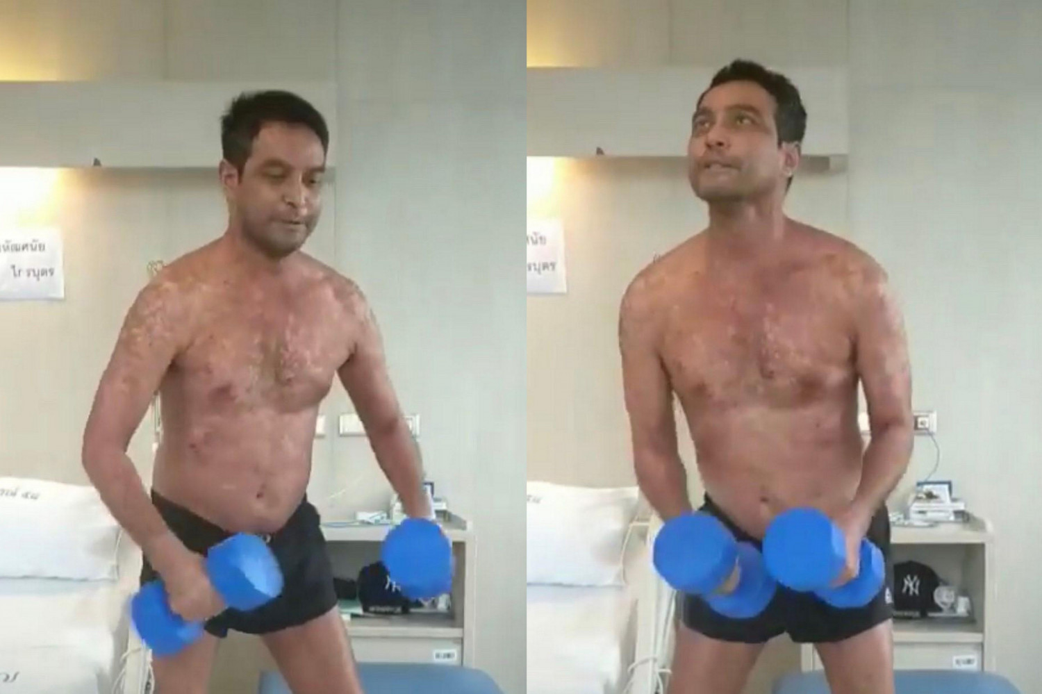 นักรบตุ่มน้ำพอง! วินัย ไกรบุตร ลุกขึ้นฟิตออกกำลังกายที่รพ. บอกนอนนานแขนขาลีบ พุงปลิ้น
