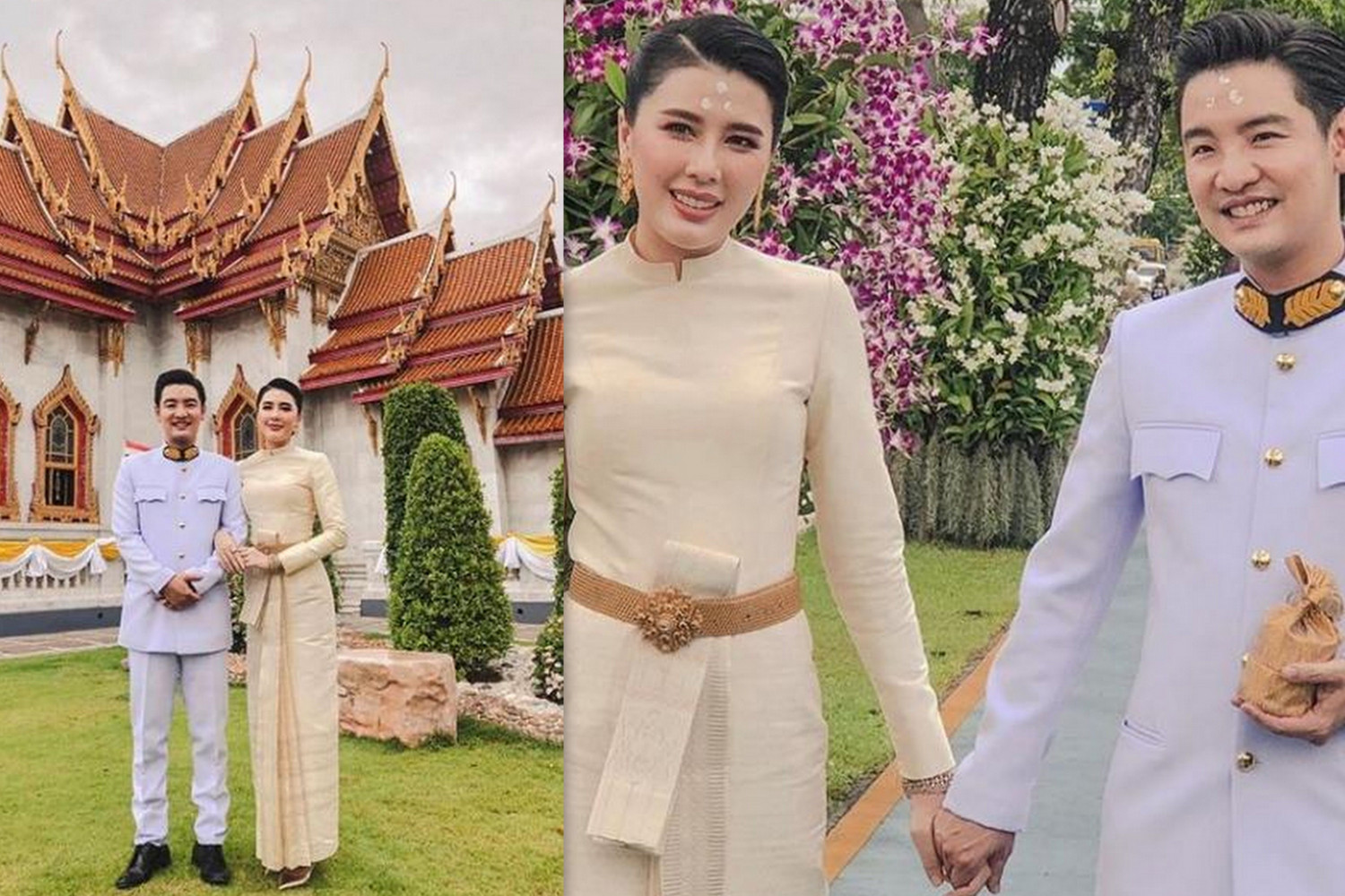 บี มาติกา-ไฮโซกร จูงมือเข้ารับพระราชทานน้ำสังข์ สมรสพระราชทานสวยหล่อสง่างามในวันสำคัญ
