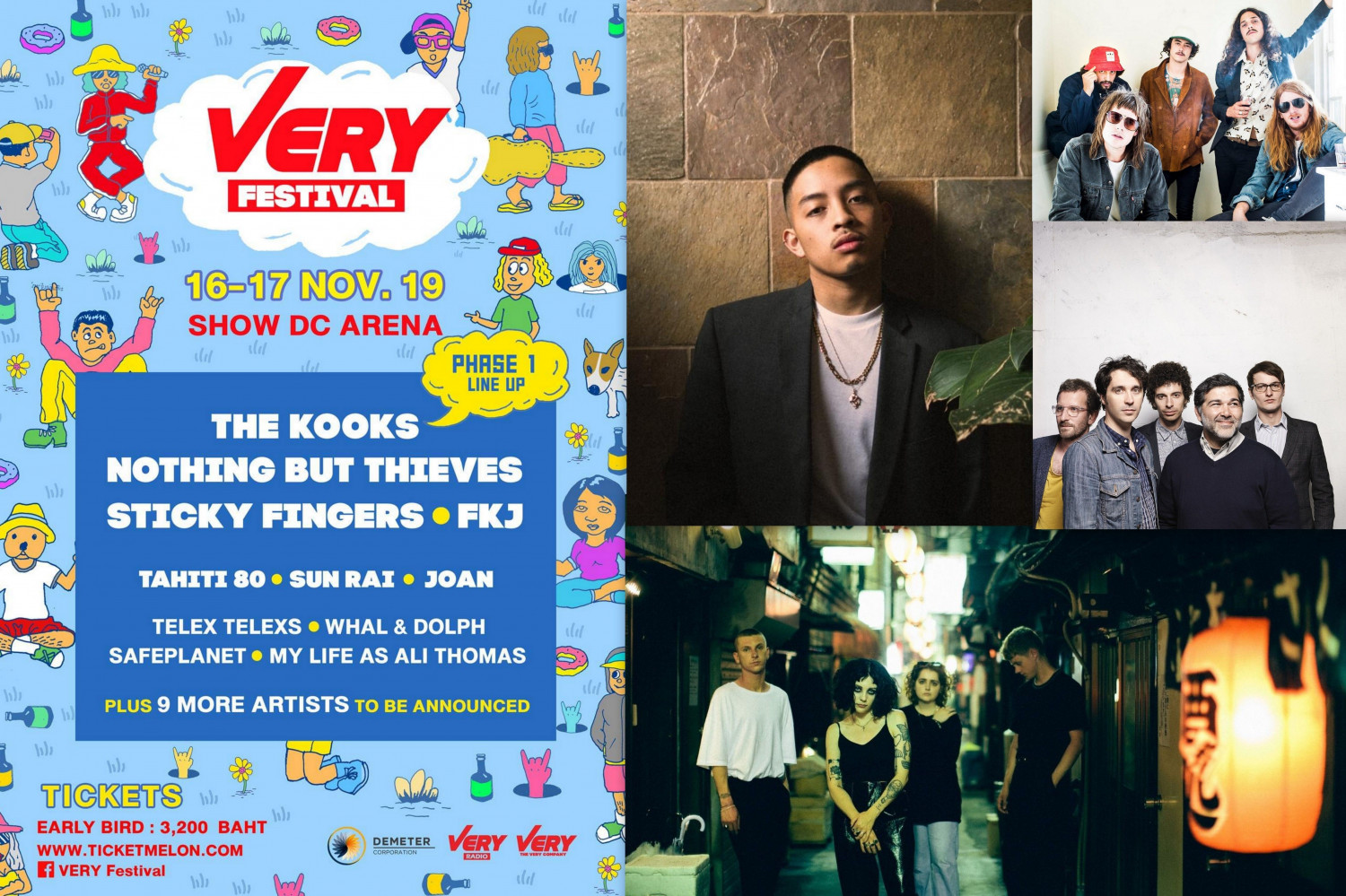 เรียกได้ว่าเป็นเทศกาลดนตรีที่รวมศิลปินระดับโลกขวัญใจชาวไทยครั้งประวัติศาสตร์สำหรับ Very Festival (เวรี่ เฟสติวัล) ที่ได้ขนทัพศิลปินมาให้เติมความสุขกันแบบเต็มอิ่มตลอด 2 วัน ทั้งศิลปินไทยและเทศถึง 20 ศิลปินด้วยกัน อาทิ The Kooks, Nothing But Thieves, Sticky Fingers, FKJ, PALE WAVES, The Marías, Tahiti 80, FUR, Sun Rai (Rai Thistlethwayte), RINI, joan, TELEx TELEXs, Safeplanet, Whal & Dolph, My Life As Ali Thomas, Somkiat, Bomb at Track และศิลปินที่จะประกาศใน Phase 3 อีก 3 รายเร็วๆ นี้ จัดขึ้นในวันที่ 16-17 พฤศจิกายน 2562 ณ Show DC Arena โดยโปรโมเตอร์มืออาชีพ The Very Company