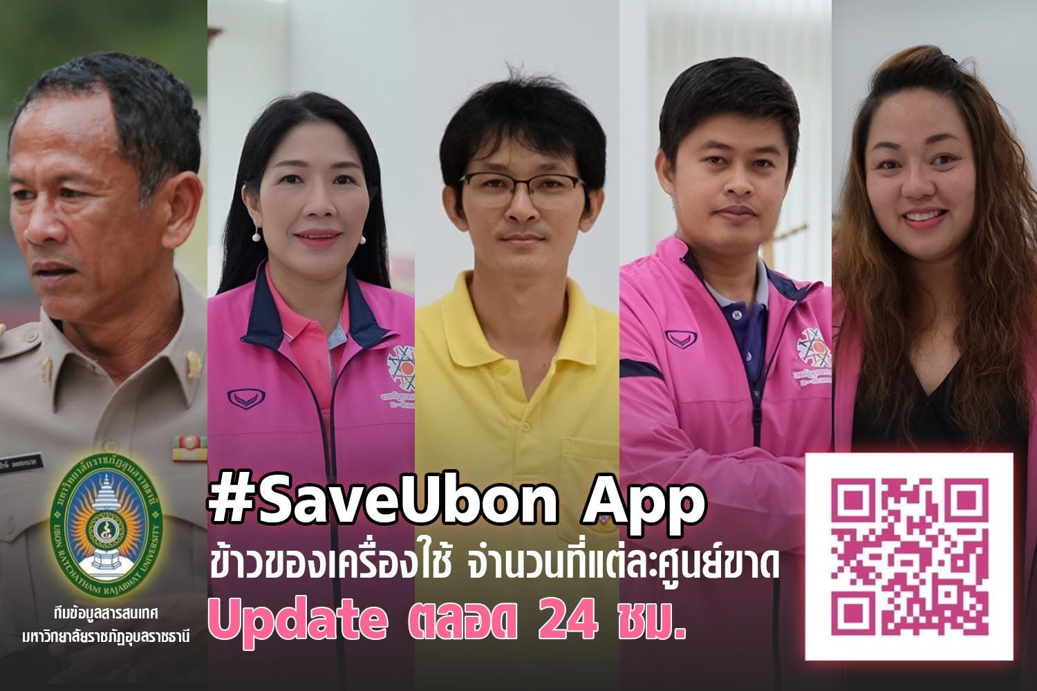 หัวหน้าทีมสารสนเทศ ระบุว่า การพัฒนาแอพพลิเคชั่น เป็นการนำเทคโนโลยีเข้าไปช่วยผู้ประสบภัยอีกแรงหนึ่ง โดยมี อ.สุรัตน์ หารวย อาจารย์ประจำคณะสาธารณสุขศาสตร์ ซึ่งอยู่ในทีมพัฒนาสารสนเทศ ได้ออกแบบและพัฒนาแอพพลิเคชั่น ‘SaveUbon’ ซึ่งมีมุมมองในเรื่องของคุณภาพชีวิต และสังคม และมีความสามารถในการเขียนโปรแกรมเป็นผู้ผุดไอเดียให้ผู้รับได้รับความช่วยเหลือตรงตามความต้องการ ทั้งเครื่องอุปโภคและบริโภค และผู้ให้ก็ให้สิ่งของตรงความต้องการของผู้รับ ตรวจสอบความต้องการได้ที่ http://ph.ubru.ac.th/saveubon/
