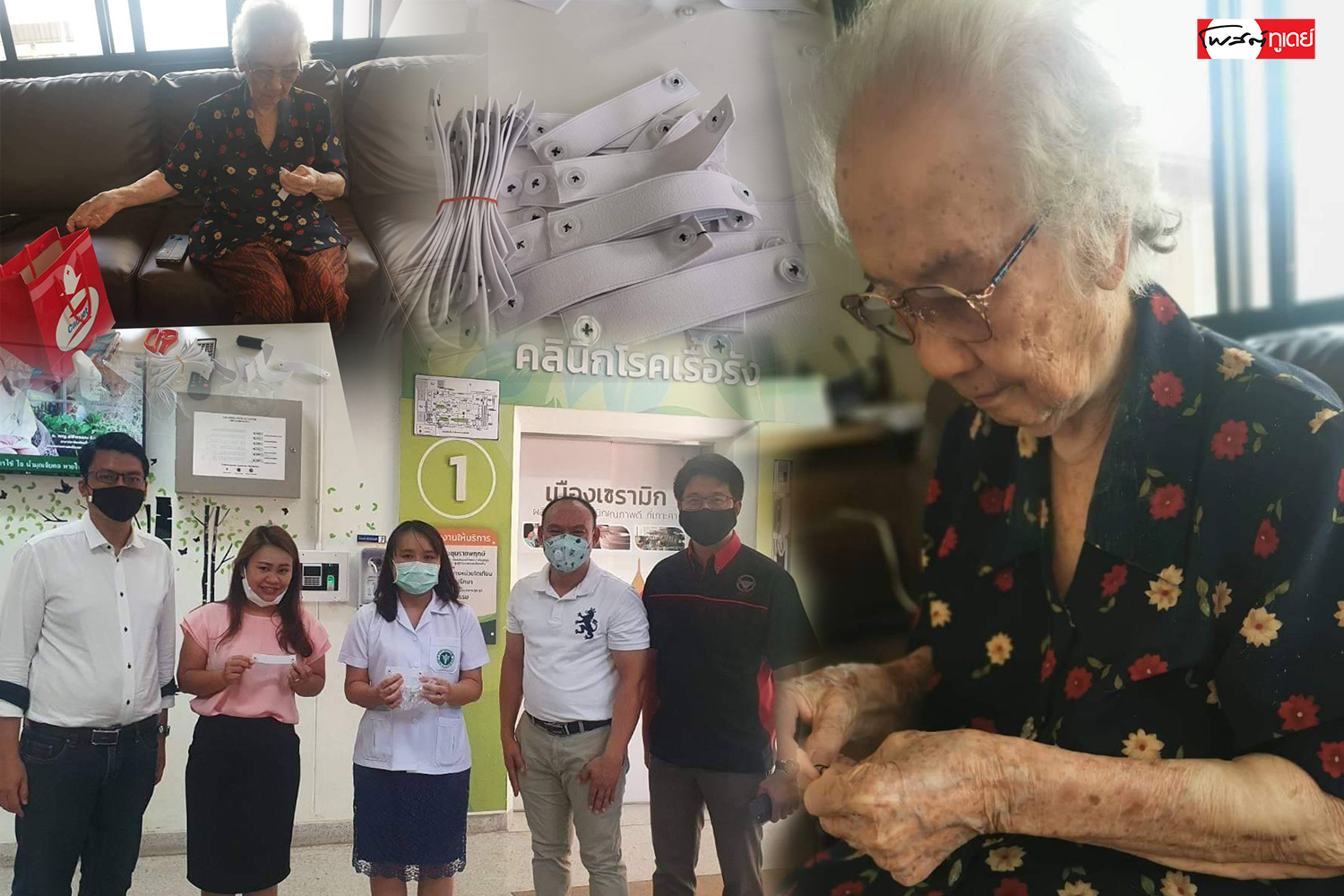 กักตัวไม่กักใจ “ยายเพ็ญ” คุณยายวัย 92 เย็บสายคล้องแมสก์แก้เจ็บหูให้หมอ
