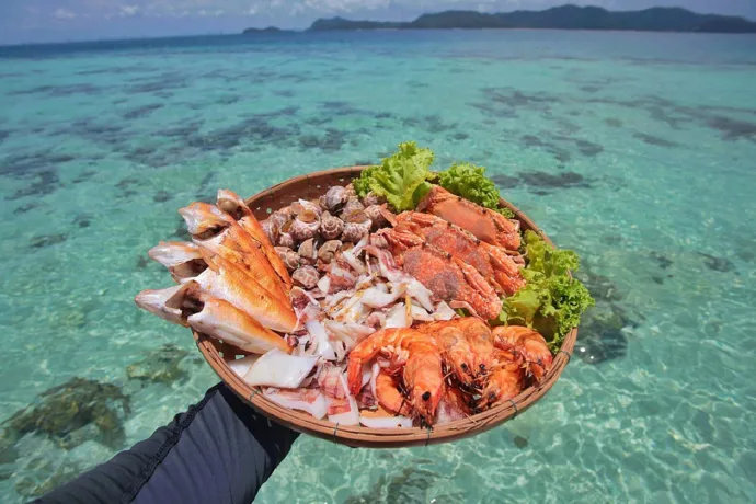 - แพ็กเกจ B ครึ่งวัน ( 5 ชม.) ดำน้ำดูปะการัง ตกปลา เล่นน้ำ พักผ่อน ชิลๆ ชิมเมนูสุดพิเศษ ทำอาหารทานกันบนเรือ ตกปลา ทานปลาดิบสดๆ จากทะเล 1-5 ท่าน 4,900 บาท ฟรี!! อาหารซีฟู้ดพร้อมน้ำจิ้มรสเด็ด