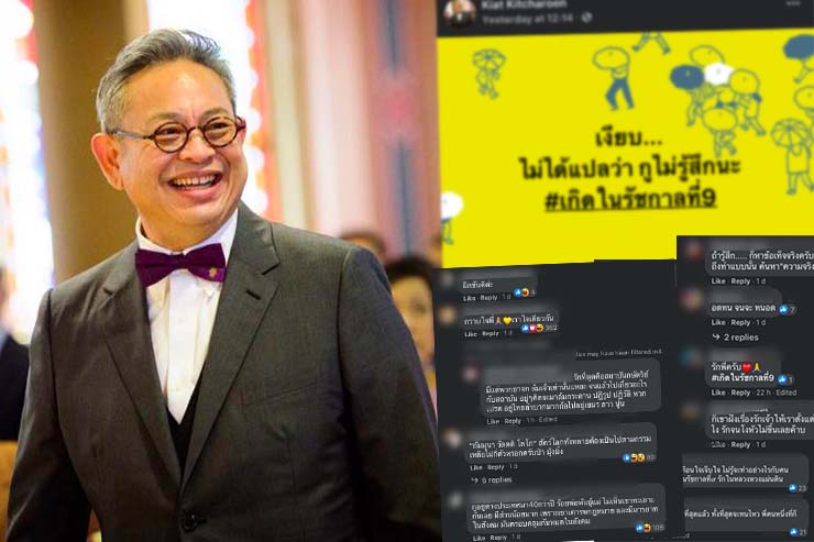 และล่าสุดทางด้านนักแสดง-พิธีกรรุ่นใหญ่ อย่าง “ซูโม่กิ๊ก-เกียรติ กิจเจริญ” ก็ได้ออกมาโพสต์ข้อความผ่านทางเฟซบุ๊กส่วนตัวว่า "เงียบ ไม่ได้แปลว่า-ูไม่รู้สึกนะ" พร้อมติดแฮชแท็กว่า #เกิดในรัชกาลที่9