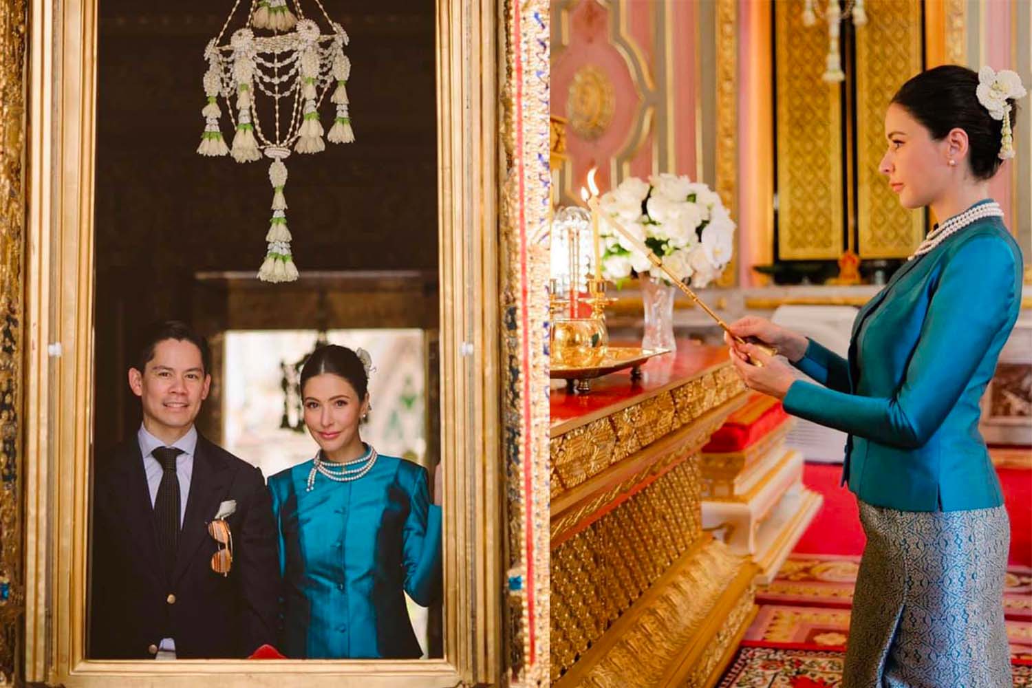 "ศรีริต้า" สวมชุดผ้าไหมยกดอกลำพูน ควง"กรณ์ ณรงค์เดช" ทำบุญวันเกิดอายุ 39 ปี ณ วัดราชบพิธ