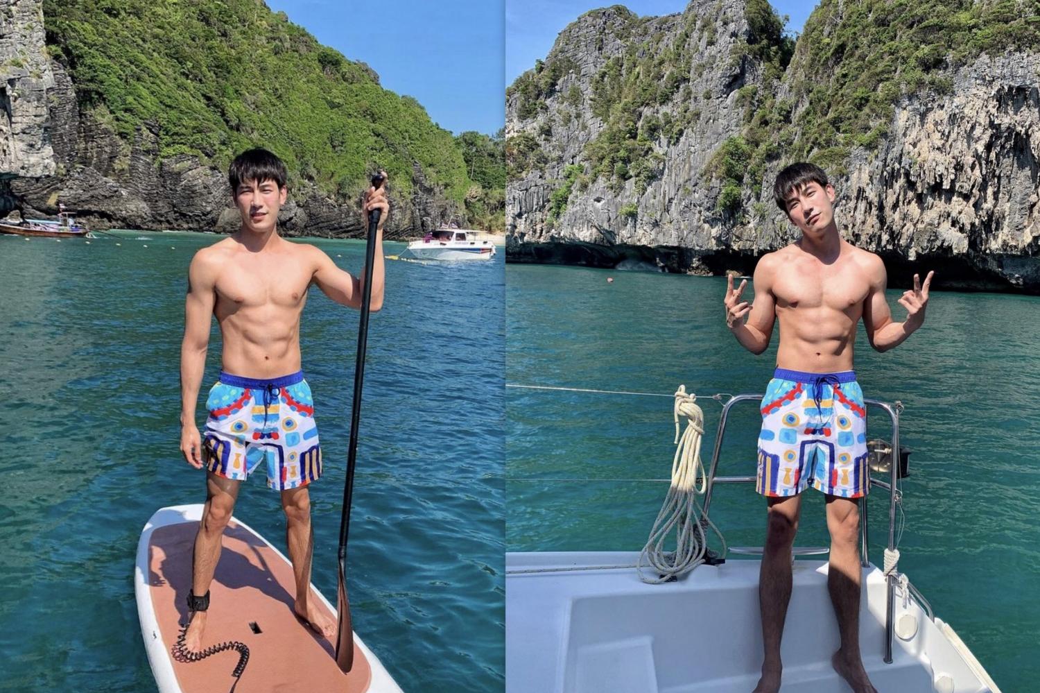 ส่องภาพแซ่บ เคน ภูภูมิ หล่อเท่อวดซิกแพคแน่นมาก ยืนพายบอร์ดกลางทะเล