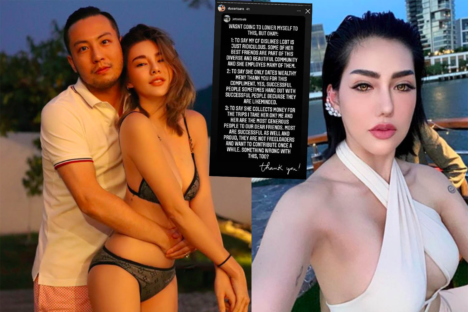 ซึ่งทางสาว “ดิว” ก็ยังไม่ได้ออกมาตอบโต้อะไร ล่าสุดทางแฟนหนุ่ม “เซบาสเตียน ลี” ก็ได้ออกมาโพสต์ไอจีสตอรี่เป็นข้อๆ เพื่อปกป้องแฟนสาวของตัวเอง ด้วยข้อความภาษาอังกฤษ ซึ่งแปลได้ใจความประมาณว่า