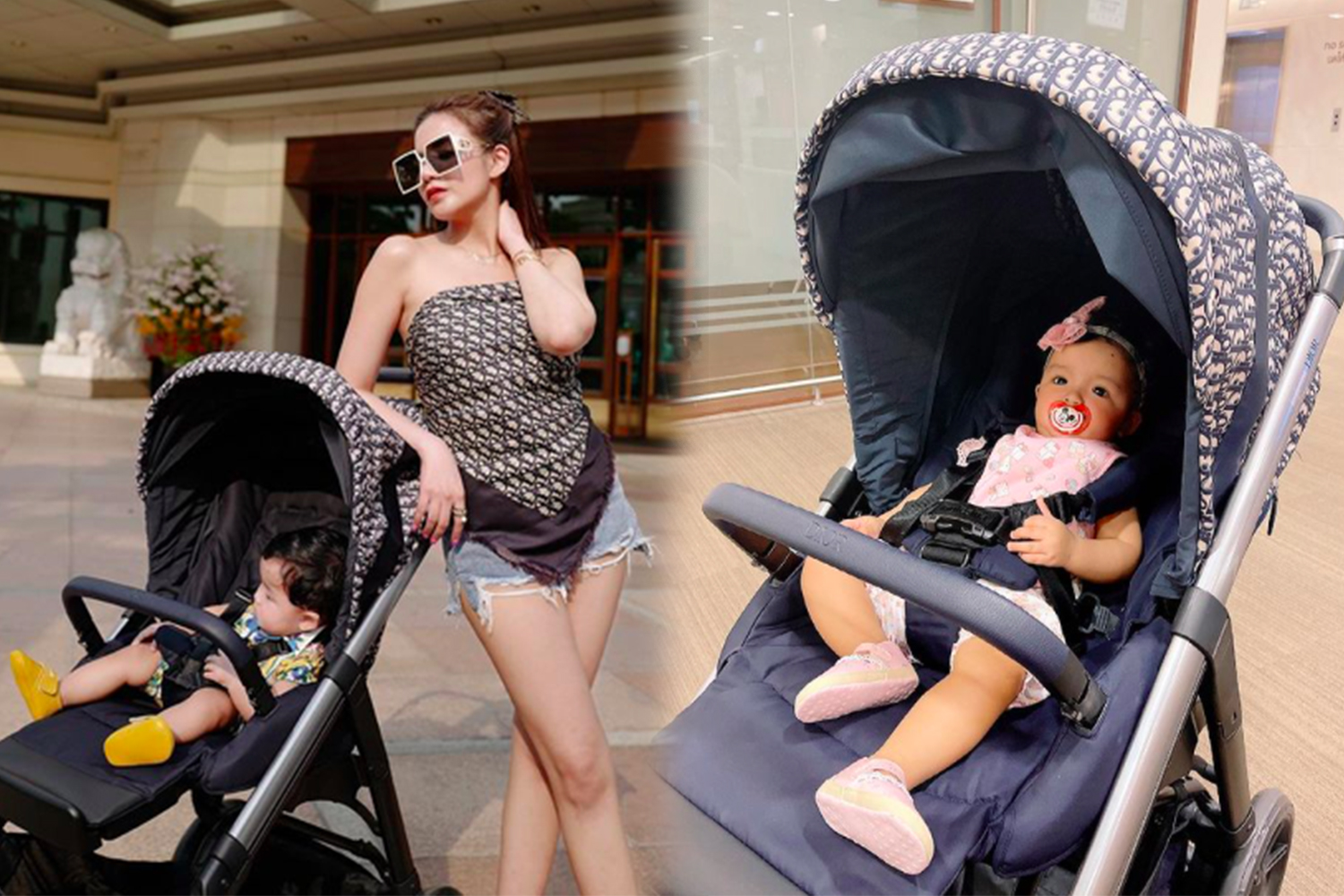 อย่างรถเข็นเด็ก ที่ทางคุณแม่ได้จัดเต็มซื้อจากแบรนด์ดังอย่าง Baby Dior ที่ได้จับมือกับ Inglesina แบรนด์คาร์ทซีทและรถเข็นเด็กสัญชาติอิตาเลียน โดยรถเข็นเด็กรุ่นแรกของ Dior ได้รับการเน้นด้วยรูปแบบ Oblique อันเป็นสัญลักษณ์ที่พบบนหลังคาแบบปรับได้ซึ่งให้การปกป้องจากแสงแดดและฝน อีกทั้งรถเข็นเด็กคันนี้สามารถพับเข้าหรือกางออกได้อย่างง่ายดาย และมาพร้อมกับการรองรับเพิ่มเติมและความสะดวกสบายสำหรับทารก รวมถึงระบบระบายอากาศที่เป็นนวัตกรรมใหม่และที่นอนที่ทำจากเส้นใยไม้ไผ่ธรรมชาติถูกนำมาตกแต่งในรายละเอียดของรถเข็นเด็กดีไซน์ร่วมสมัย มาพร้อมฟังก์ชั่นการใช้งานที่ถูกพัฒนาขึ้นอีกขั้น
