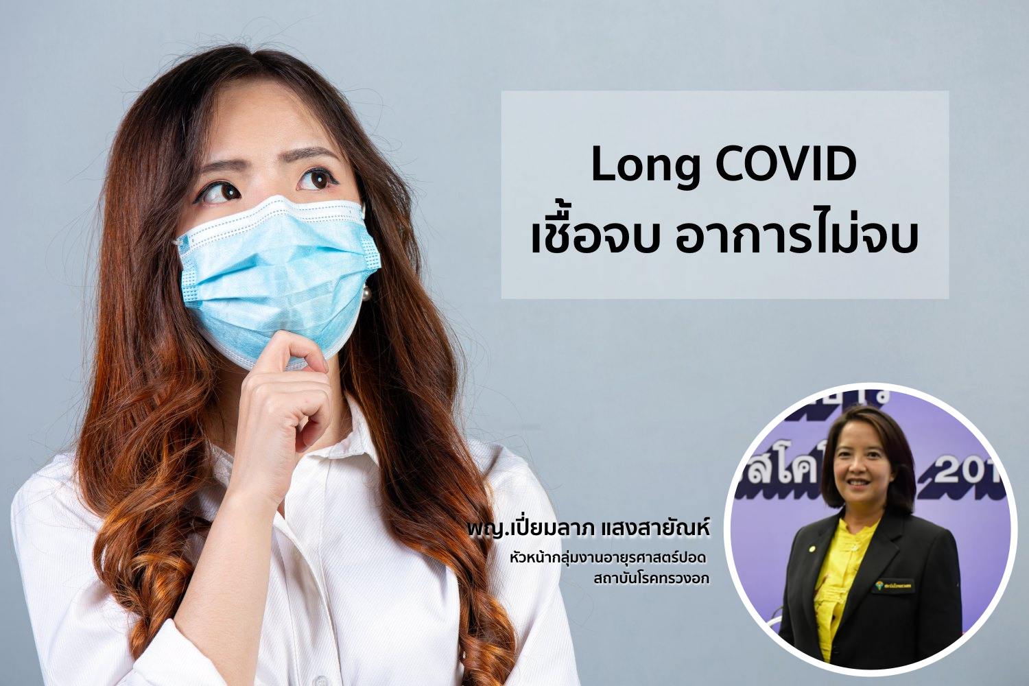 พญ.เปี่ยมลาภ แสงสายัณห์ หัวหน้ากลุ่มงานอายุรศาสตร์ปอด สถาบันโรคทรวงอก อธิบายว่า Long COVID หรือ อาการหลงเหลือหลังติดเชื้อโควิด-19 พบในผู้ป่วยบางรายที่เป็น โควิด–19 และพ้นระยะการแพร่เชื้อ ( เชื้อ โควิดอยู่ในร่างกายประมาณ 10-14 วันมากสุด 21 วัน) แล้วแต่ยังแสดงอาการคล้ายคลึงกับอาการขณะที่ยังติดมีเชื้อโควิด–19 อยู่ ในภาวะปกติหลังติดเชื้อไวรัส ผู้ป่วยจะมีอาการฟื้นตัวได้ภายใน 2-3 สัปดาห์ ต่ในผู้ป่วย Long COVID กลับพบว่ามีอาการมากกว่า 2 เดือนขึ้นไป และสามารถมีอาการได้นานถึง 4-6 เดือน ลักษณะอาการที่สามารถสังเกตได้ในกรณีที่มี ภาวะ Long COVID คือจะมีอาการคั่นเนื้อคั่นตัว อาการไอเล็กน้อย อ่อนเพลีย ยังรู้สึกถึงการไม่ฟื้นตัวจากอาการป่วย เช่น ยังรู้สึกเหนื่อยหายใจไม่อิ่ม อาการ Long COVID ไม่มีผลต่อสุขภาพในระยะยาวกว่านั้น