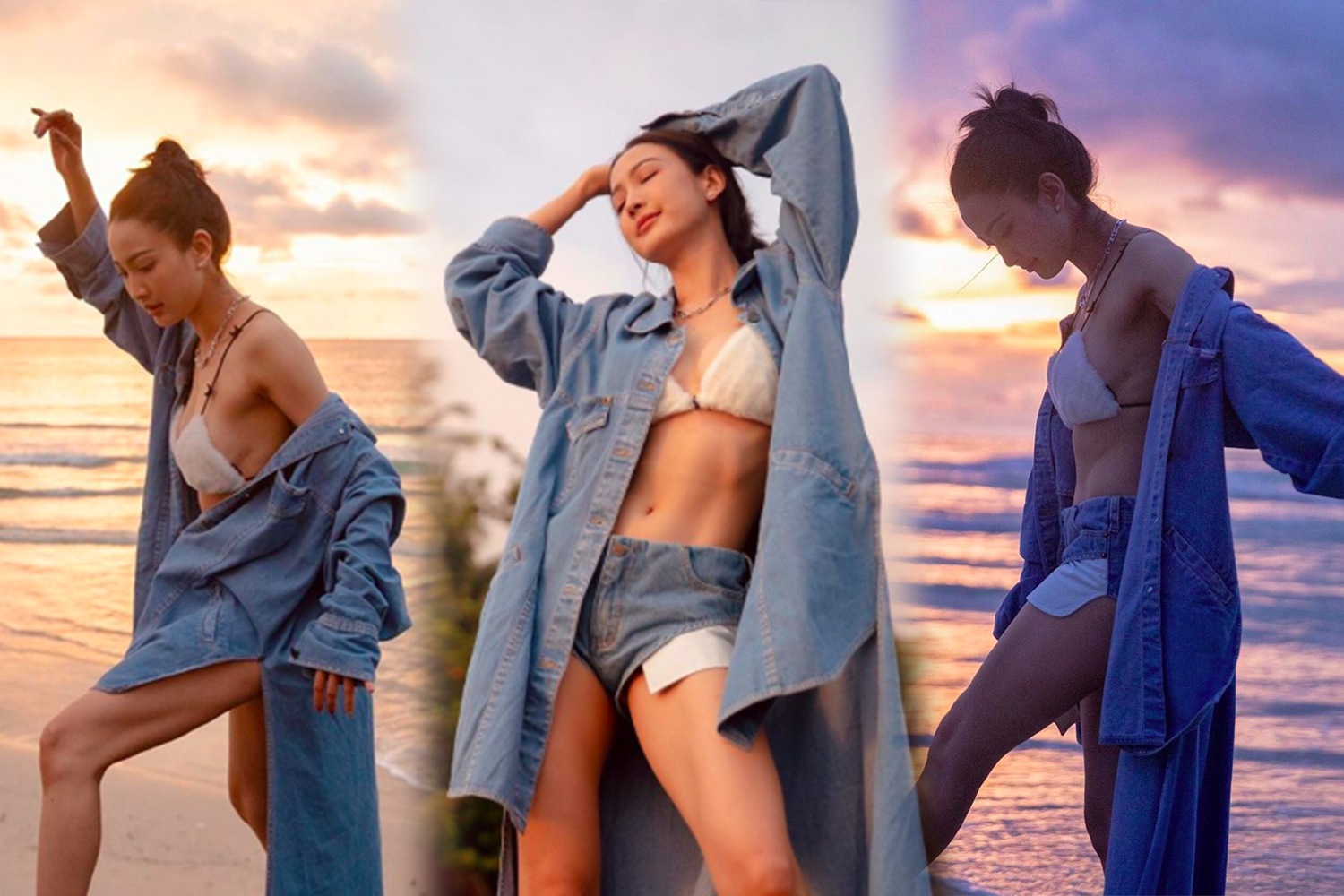 ซึ่งแน่นอนว่าไปทะเลทั้งที หุ่นก็ฟิตมาสวยๆ ก็ต้องจัดชุดว่ายน้ำอวดหุ่นสุดเฟิร์มให้ได้ชมกัน โดยเธอได้สวมชุดบิกินี่สีขาว อวดให้เห็นกล้ามหน้าท้องแบบชุดๆ เพิ่มความชิคด้วยเสื้อคลุมยาวและกางเกงยีนส์ขาสั้นสุดๆ ใส่ทับ