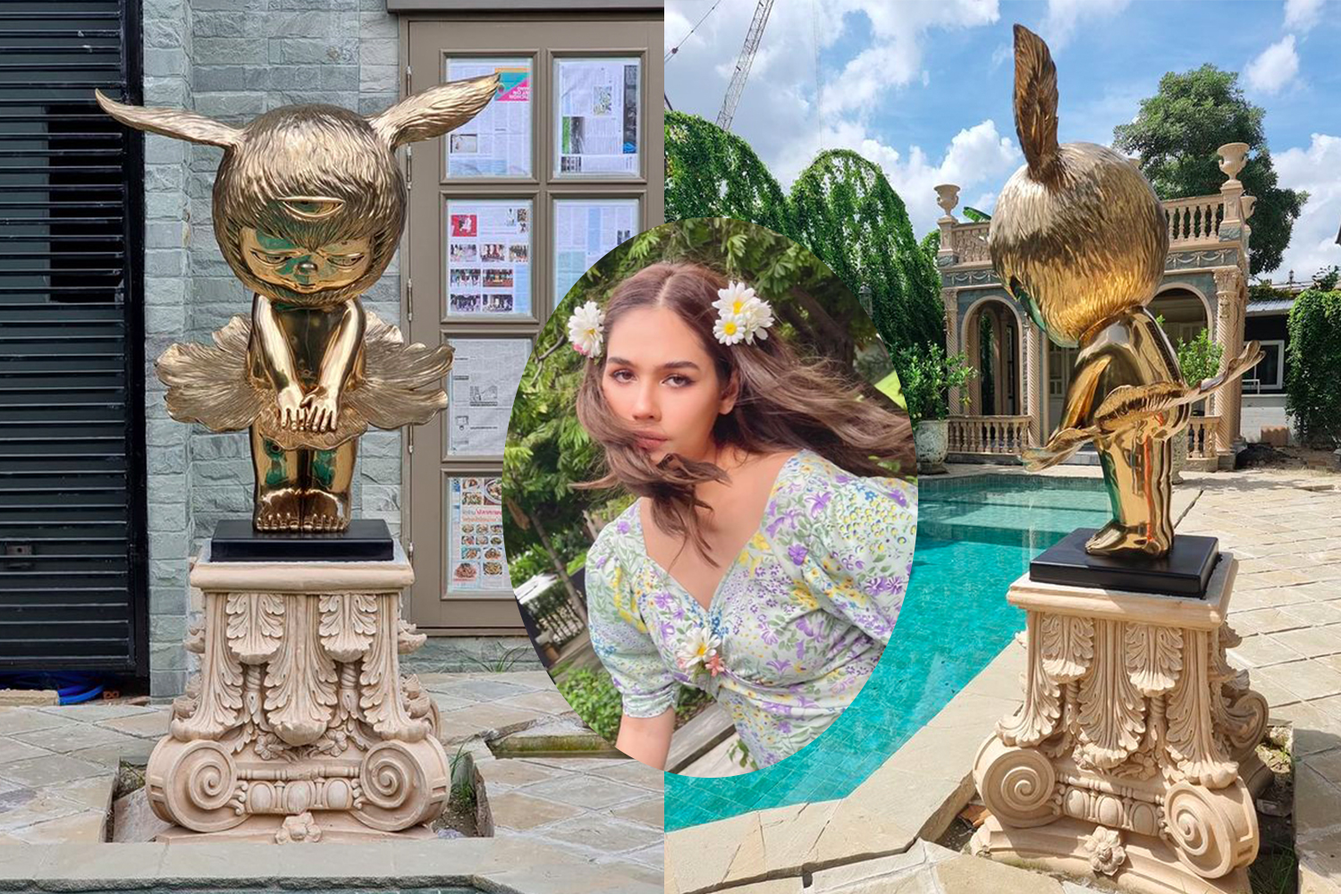 ล่าสุดสาว “ชมพู่” ได้เผยให้เห็นมุมสระว่ายน้ำที่บ้านหลังใหม่ ที่ดูเหมือนว่าจะเป็นบ้านคุณยายหนิง ที่เธอนั้นได้ยกตุ๊กตาตัวใหญ่สีทองจากศิลปินสตรีทอาร์ตที่โด่งดัง Alex Face มาตกแต่งไว้ข้างสระว่ายน้ำ เรียกว่าดูสวยงามอลังการ เด่นชัดมาก ใครเห็นถึงกับต้องร้องว้าวเลย