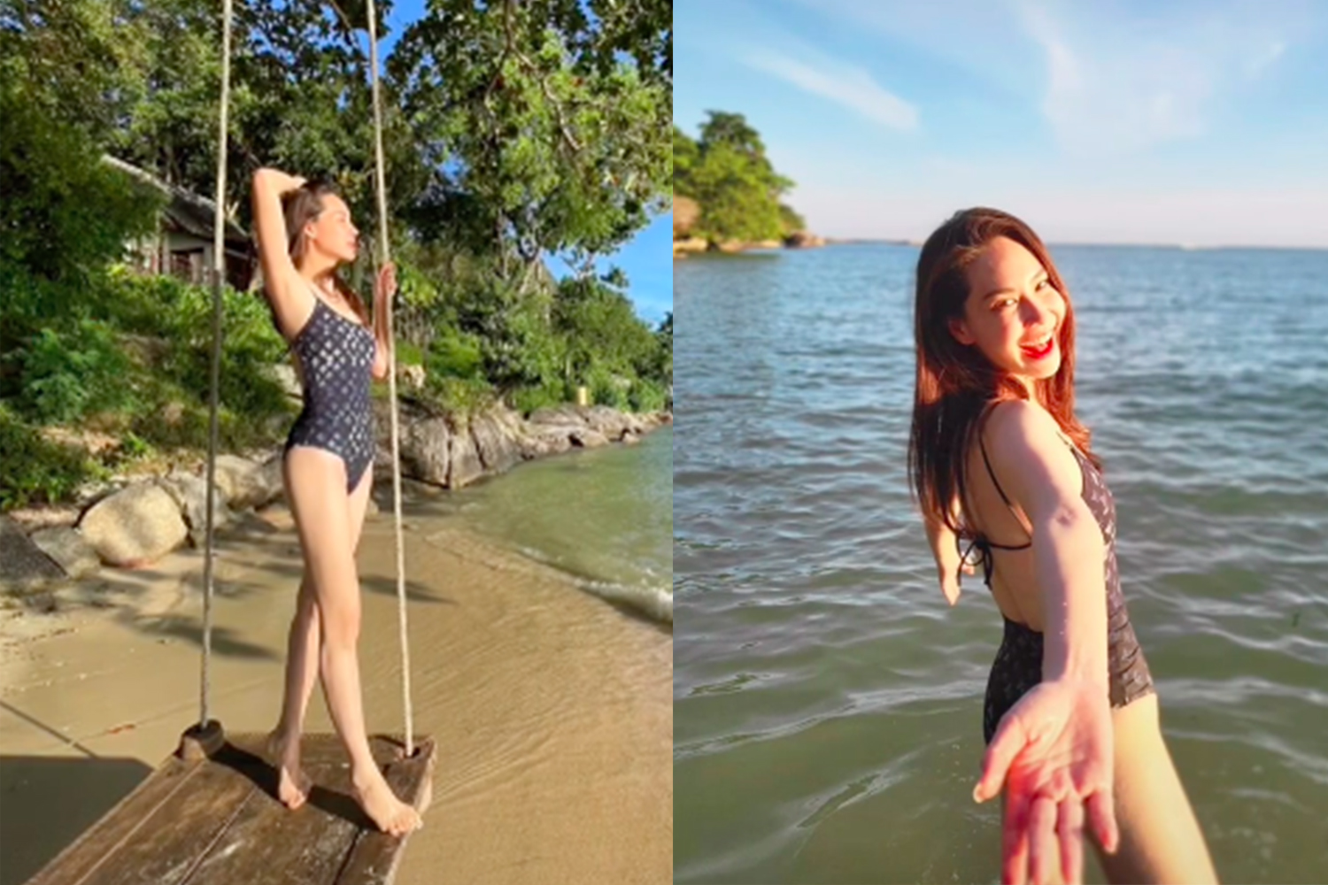 โดยเธอนั้นได้เลือกชุดว่ายน้ำวันพีซแบรนด์ดังมาใส่ ด้านหน้าอาจจะดูเรียบๆ ธรรมดา ส่วนทางด้านหลังเป็นแบบเว้า ทำเอาตาค้างกับแผ่นหลังขาวเนียนท้าแดด แถมยังเผยให้เห็นเรียวขายาวสวยงามอีก งานนี้หลายคนต่างบอกเป็นเสียงเดียวกันว่าจะกี่ปีหุ่นก็ยังเป๊ะหมือนเดิม แถมยังดูเด็กลงและสวยมากอีกต่างหาก
