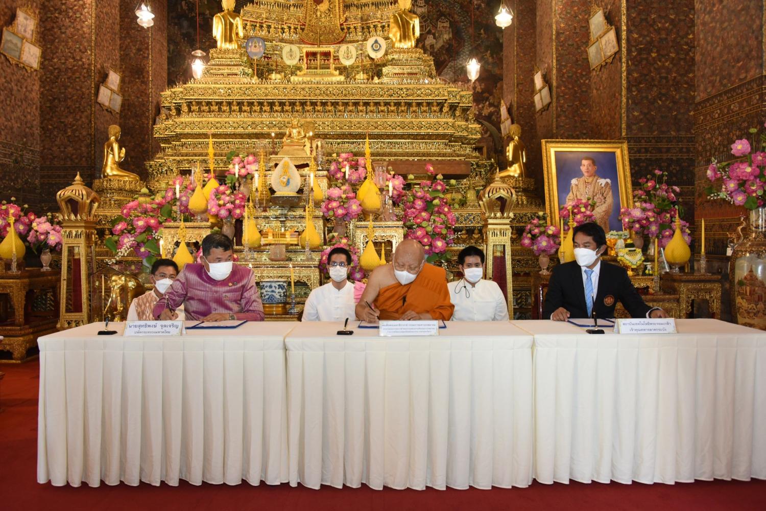 เมื่อวันที่ 24 ก.พ. เจ้าประคุณสมเด็จพระมหาธีราจารย์ กรรมการมหาเถรสมาคม ประธานคณะกรรมการฝ่ายสาธารณสงเคราะห์ของมหาเถรสมาคม เจ้าอาวาสวัดพระเชตุพนวิมลมังคลาราม ราชวรมหาวิหาร นายสุทธิพงษ์ จุลเจริญ ปลัดกระทรวงมหาดไทย และ ดร.สุรินทร์ คำฝอย รักษาการแทนรองอธิการบดีฝ่ายแผนงาน สถาบันเทคโนโลยีพระจอมเกล้าเจ้าคุณทหารลาดกระบัง (สจล.) ร่วมลงนามบันทึกข้อตกลงความร่วมมือบทบาทในการเกื้อหนุนระหว่างวัดและชุมชนให้มีความสุขอย่างยั่งยืน โดยมี พระธรรมวชิรโมลี เจ้าอาวาสวัดยานนาวา รองประธานสำนักงานกำกับดูแลพระธรรมทูตไปต่างประเทศของมหาเถรสมาคม พระเทพวชิรโมลี ผู้ช่วยเจ้าอาวาสวัดพระเชตุพนฯ พระปัญญาวชิรโมลี เจ้าอาวาสวัดป่าศรีแสงธรรม ที่ปรึกษาปลัดกระทรวงมหาดไทย พระพิพัฒน์วชิโรภาส ผู้อำนวยการศูนย์พุทธธรรมสมเด็จพระมหาธีราจารย์ ป่าดงใหญ่วังอ้อ ที่ปรึกษาปลัดกระทรวงมหาดไทย พระเถรานุเถระ พร้อมเจ้าหน้าที่ที่เกี่ยวข้องร่วมในพิธี ณ ที่พระอุโบสถวัดพระเชตุพนวิมลมังคลาราม ราชวรมหาวิหาร