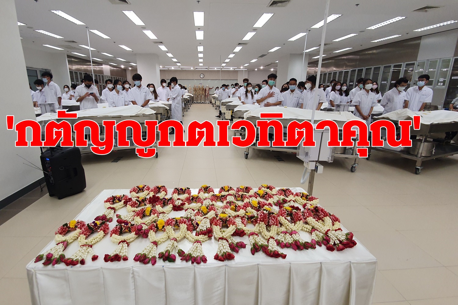 นศพ.มณิสรา จิรพรสุพรรณและนศพ.กฤติน เวณุนันทน์ เปิดเผยว่า การที่ได้ศึกษาจากร่างอาจารย์ใหญ่นั้น ถือเป็นความสำคัญต่อวงการแพทย์ เพื่อให้นิสิตได้สัมผัส เรียนรู้อวัยวะต่าง ๆ ในร่างกาย พร้อมเพิ่มความชำนาญให้การผ่าตัดลดความผิดพลาดของแพทย์เมื่อต้องรักษาผู้ป่วย การที่คิดว่าเราได้เรียนกับร่างอาจารย์ใหญ่ทำให้เราเข้าใจและจดจำได้ดีมากขึ้นก็อยากจะขอบคุณอาจารย์ใหญ่ในส่วนนี้ จริง ๆ แล้ววิชากายวิพากศาสตร์เป็นวีชาที่เป็นพื้นฐานของแพทย์ ซึ่งการเข้าใจในทุก ๆ ส่วนของร่างกายเป็นการที่เราสามารถที่จะนำความรู้ไปต่อยอดในการเรียนวิชาอื่น ๆ ได้ ไม่ใช่เรียนกายวิพากศาสตร์แต่มันเหมือนชีวิตของเราที่เราจะต้องเข้าใจร่างของมนุษย์