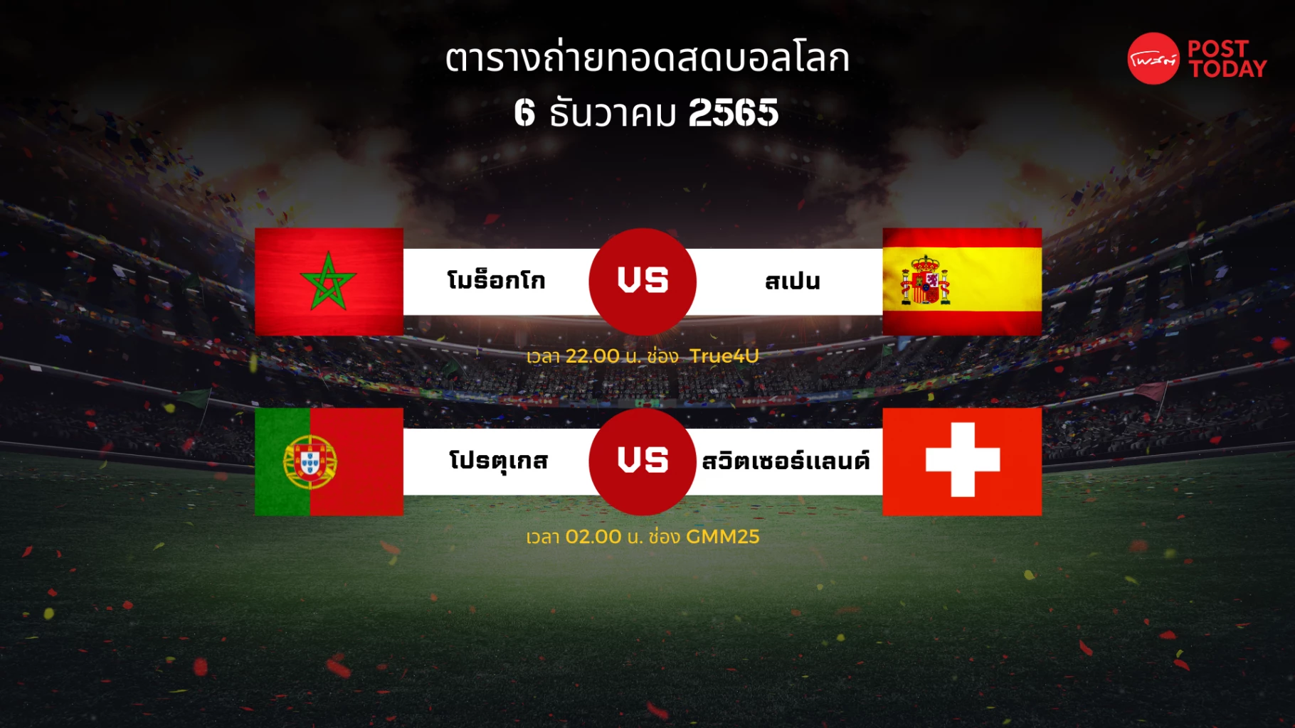 โปรแกรมถ่ายทอดสอดฟุตบอลโลก อังคารที่ 6 ธันวาคม 2565