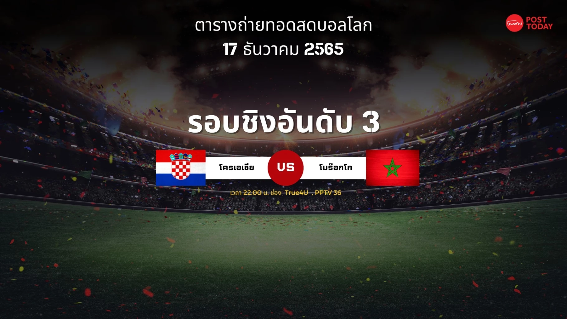 โปรแกรมการแข่งขัน "ฟุตบอลโลก 2022" รอบชิงอันดับ 3 ระหว่าง โครเอเชีย พบ โมร็อกโก ตรวจสอบตารางแข่งขันและช่องทางรับชมได้ที่นี่