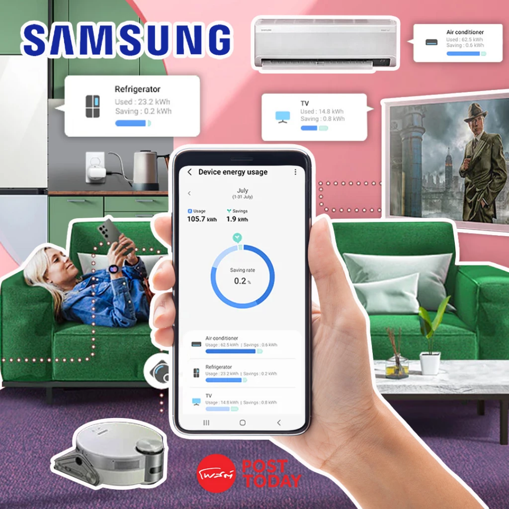 SmartThings ยังสามารถคำนวณการใช้ไฟฟ้าให้เรา หากเรากำหนดค่าใช้จ่ายไว้ว่าเดือนนี้อยากจะจ่ายค่าไฟที่จำนวนเท่านี้ ถ้าเกือบถึงแล้วมันก็จะแจ้งเตือนมาว่ามีการใช้ไฟฟ้าจะเกินขอบเขตที่กำหนดแล้ว เพราะเราได้พัฒนาให้ตัวแอปสามารถคำนวณค่าไฟได้อย่างแม่นยำและสอดคล้องไปกับค่าไฟตามแต่ละประเทศแต่ละภูมิภาคด้วย ซึ่งทำให้การจัดการภายในบ้านมีประสิทธิภาพมากขึ้น และมีผลวิจัยออกมาแล้วว่า แอร์สามารถประหยัดค่าไฟได้สูงสุดถึง 20% เครื่องซักผ้าสามารถประหยัดค่าไฟได้สูงสุด 70% ตู้เย็นสามารถประหยัดค่าไฟได้สูงสุด 7% และทีวีสามารถประหยัดไฟได้สูงสุด 23%’