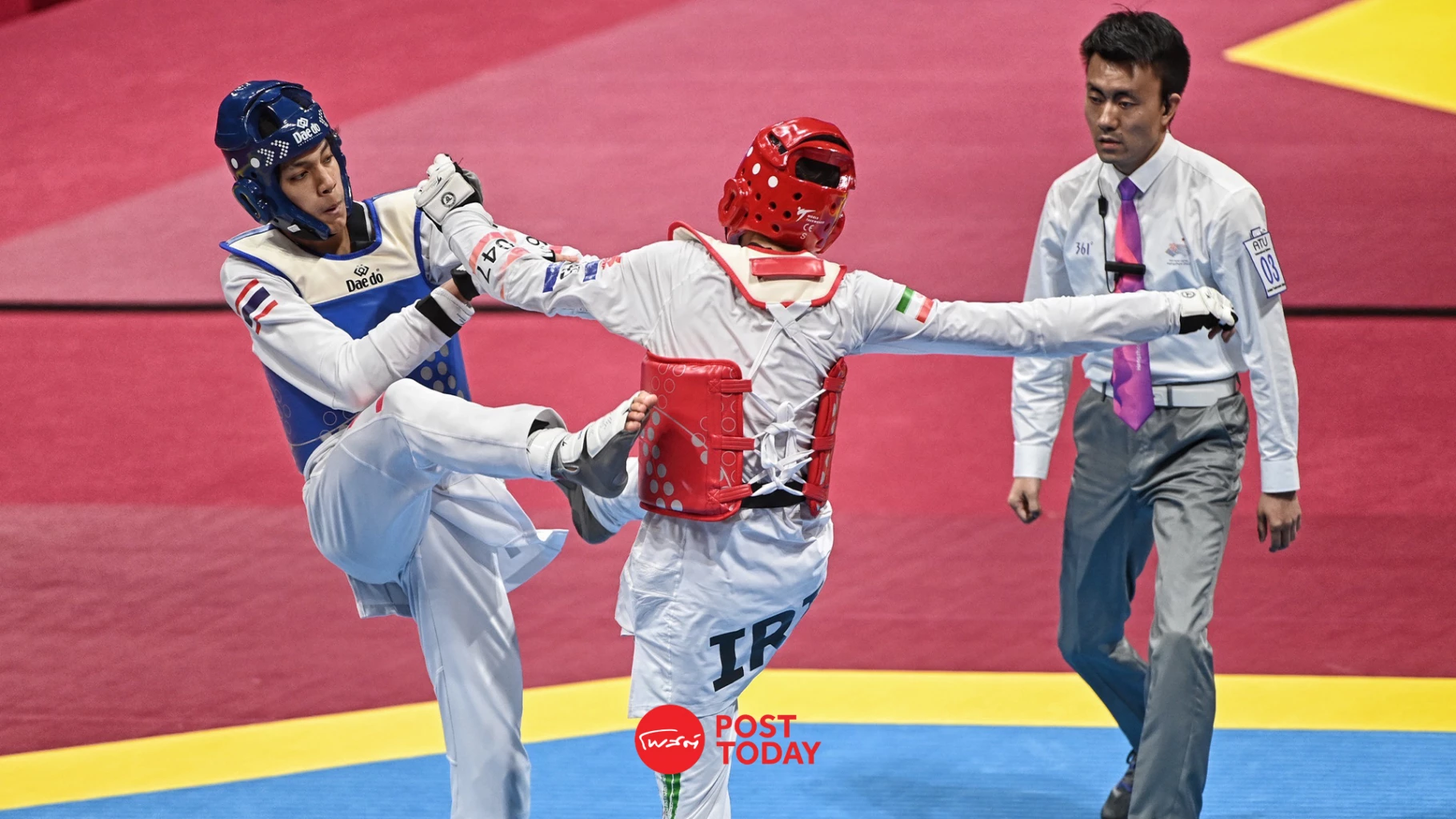 เทควันโดชาย รุ่น 63 กิโลกรัม รอบชิงชนะเลิศ "หยู" บัลลังก์ ทับทิมแดง ของไทย พบกับ อลิเรซ่า ฮอสเซนปูร์ จากอิหร่าน