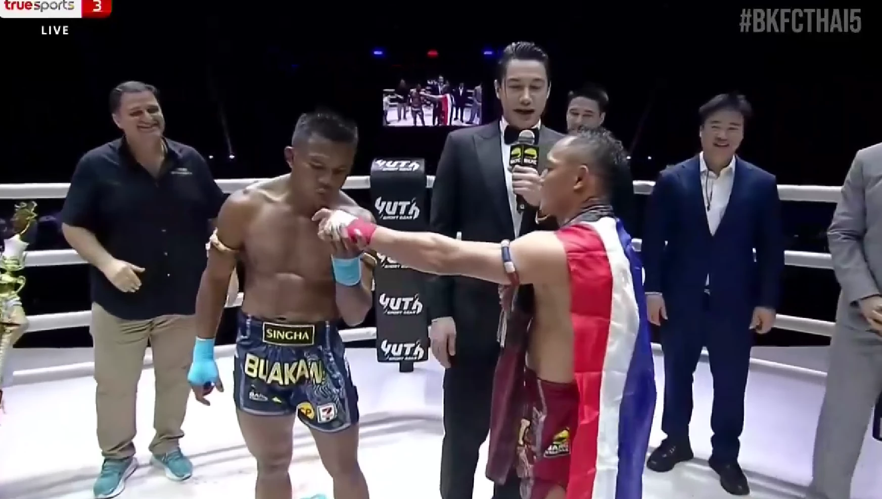 มวย ซูเปอร์ไฟต์ BKFC Thailand 5 ที่พัทยา จ.ชลบุรีของ 2 คู่รักเพื่อนซี้อย่าง บัวขาว บัญชาเมฆ และ แสนชัย พีเค.แสนชัยมวยไทยยิม จบลงด้วยความมันสะใจของคอมวยที่รอชม เพราะทั้งคู่แลกหมัดและแข้งใส่กันดุเดือด ชนิดไม่มีกั๊กไม่มีหยุด