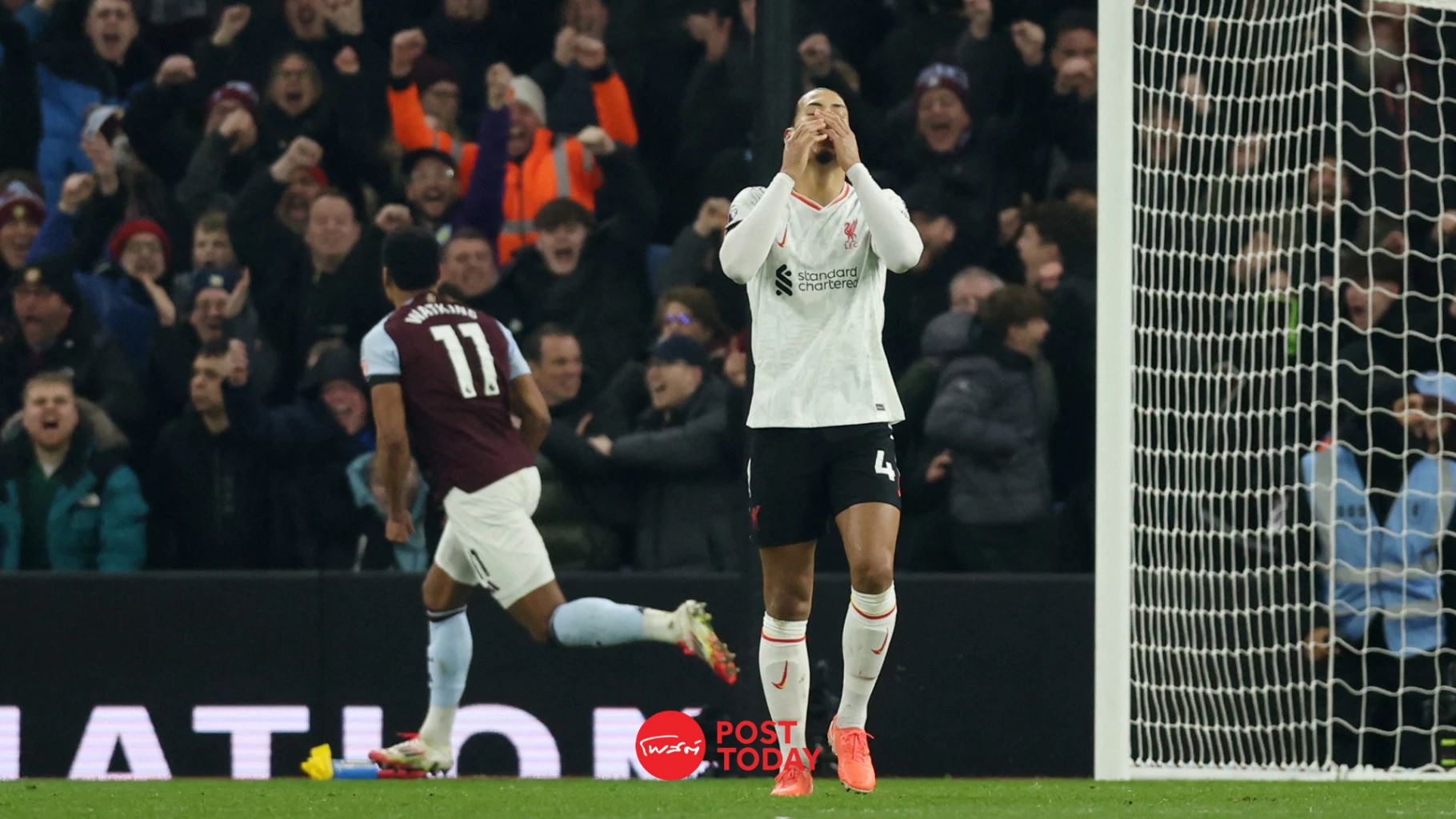 นาทีที่ 38 แอสตัน วิลล่า ตีเสมอ 1-1 เมื่อแนวรับหงส์แดงโหม่งไปเข้าทาง ยูริ ตีเบมันส์ กดด้วยซ้ายเข้าไป