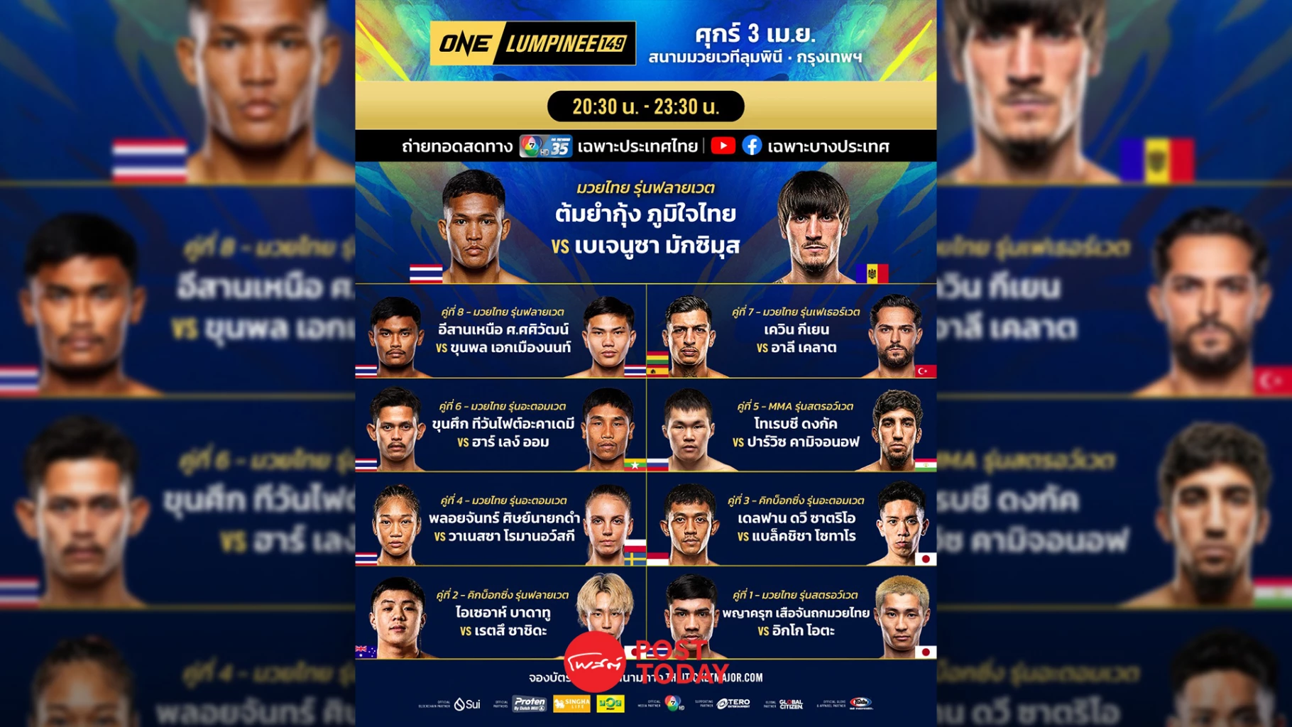 LIVE ถ่ายทอดสด มวยวัน ลุมพินี 149 ONE Championship วันนี้ 3 เม.ย.69
