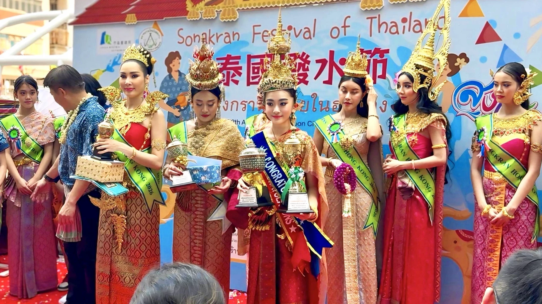ไฮไลต์ที่สะกดทุกสายตาในปีนี้ คือการปรากฏตัวของ "น้องสายรุ้ง (Rainbow)" หมายเลข 9 เยาวชนลูกครึ่งไทย-ฮ่องกง วัยเพียง 13 ปี ที่สร้างปรากฏการณ์คว้าตำแหน่ง "ชนะเลิศเทพีสงกรานต์ฮ่องกง 2569" พ่วงด้วยรางวัล "ขวัญใจมวลชน" จากคะแนนพวงมาลัยถล่มทลาย ซึ่งถือเป็นผู้เข้าประกวดคนแรกในรอบกว่าสองทศวรรษที่สามารถเหมาทั้งสองรางวัลใหญ่ไปครองได้สำเร็จ