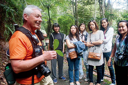 ผมอดแปลกใจไม่ได้ว่า ไปเดินป่าตอนนี้แล้วจะเห็นอะไร มีอะไรให้ดู หรือว่าจะส่องสัตว์แบบเขาใหญ่ ก็ไม่น่าจะใช่ เพราะที่นี่ไม่ใช่อุทยานแห่งชาติถึงจะมีสัตว์มากมายขนาดนั้น เรามาถึงทางเข้าเส้นทางเดินป่า Hemmant Trail พร้อมกับคุณดูไรย์ พรานนำทางชาวมาเลเซียเชื้อสายฮินดู รูปร่างสูงใหญ่ไว้หนวด ตาโต ตัวดำ แต่ใจดี เราได้รับไฟฉายเล็กๆ คนละกระบอกไว้คอยส่องทาง แต่แสงสว่างดูจะไม่ค่อยเพียงพอกับความมืดขนาดนั้น เอ๊ะ หรือว่าเขาไม่ต้องการให้แสงไฟไปรบกวนสัตว์ นึกแล้วตื่นเต้น คุณดูไรย์เดินหายเข้าไปในความมืดพร้อมกับอธิบายเป็นภาษาอังกฤษอย่างคล่องแคล่ว พี่แคท ล่ามสาวไทยที่ไปปักหลักทำมาหากินอยู่ในมาเลเซียก็ตามแปลอย่างไม่ลดละตลอดทาง ความมืดบนเส้นทางแคบๆ ที่เปียกชื้นจากน้ำค้าง ทำให้ทุกย่างก้าวที่ย่ำลงไปเป็นไปอย่างระมัดระวัง พวกเราหยุดเป็นระยะเมื่อคุณดูไรย์เรียกไปดูอะไรต่อมิอะไรตั้งแต่แมลง กิ้งกือ คางคก ที่อยู่ตามพื้นดิน ต้นไม้ใบหญ้าที่อยู่รอบๆ ตัว คุณดูไรย์อธิบายอย่างมีเหตุมีผลจนน่าสนใจ จากเรื่องเล็กๆ น้อยๆ ที่เราคิดว่าก็เห็นกันอยู่ทุกวัน บ้านเราก็มี แต่พอฟังแล้วก็กลับมาคิดว่า เออเนอะ... มีช่วงหนึ่งเป็นทางชันขึ้นเนินสูงราว 20 เมตร แกให้พวกเราหลับตาแล้วเดินไต่ตามเชือกขึ้นไป โอ้!!! แม่เจ้า แค่ลืมตาเดินก็ลำบากพออยู่แล้ว แต่คุณดูไรย์ให้เหตุผลว่า การหลับตาแล้วใช้จินตนาการเอาหัวใจสัมผัสและซึมซับกับธรรมชาติจะให้ความรู้สึกอีกอย่างหนึ่ง