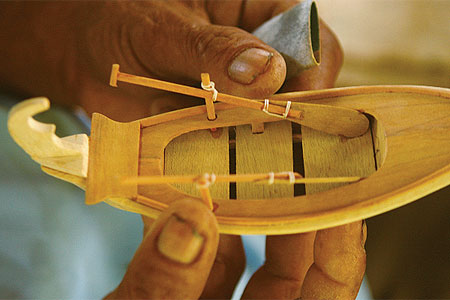 สมาชิกกลุ่มรุ่นแรกที่ยังมีชีวิตอยู่คือลุงดลหมาน ตนคลัง อายุ 58 ปี ฝึกทำเรือหัวโทงจำลองมาตั้งแต่อายุ 21 ปี ลุงดลหมานอธิบายว่า เรือหัวโทงจำลองทำจากไม้สัตบรรณ หรือไม้ตีนเป็ด และเศษๆ ไม้ตะบูนขาว ไม้ที่กลายเป็นไม้สงวนไปแล้ว วิธีการทำเรือแต่ละลำไม่มีขนาดที่แน่นอนตายตัว ทำให้ไม่สามารถทำเป็นแปลนต่อเรือจำลองแบบสำเร็จรูปได้ เพราะต้องค่อยๆ ไสไม้ไปทีละนิดให้ทั้งสองเท่ากัน จึงไม่สามารถขายเป็นชิ้นส่วนให้คนนำไปประกอบที่บ้านได้