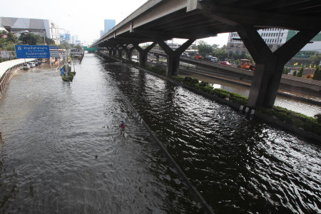 สถานการณ์น้ำท่วมกทม.ที่ถ.วิภาวดีรังสิต ตั้งแต่ห้าแยกลาดพร้าว จนถึงคลองบางซื่อ น้ำเต็มพื้นที่ถนนทุกช่องทาง ทั้งช่องทางด่วนและคู่ขนาน โดยที่หน้าสำนักงานหนังสือพิมพ์ไทยรัฐ ปริมาณน้ำสูงกว่า 50 ซม. การจราจรถูกปิดลงโดยปริยายรถเล็กไม่สามารถผ่านได้