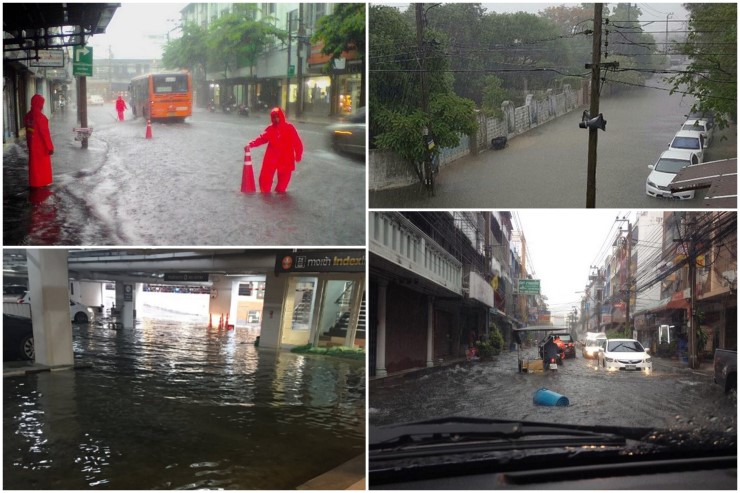 ฝนตกหนักหลายพื้นที่ในกรุงเทพฯ ทำให้เกิดน้ำท่วมรอระบายในถนนหลายเส้น