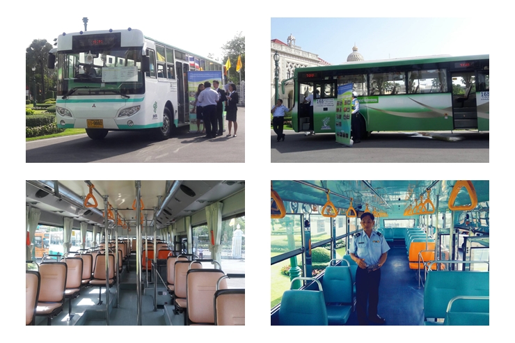 1.รถโดยสารเก่าที่ปรับปรุงสภาพเป็นรถใหม่ ใช้น้ำมันดีเซลเป็นเชื้อเพลิง 2 คัน 2. รถโดยสารใช้ก๊าซธรรมชาติเป็นเชื้อเพลิง 1 คัน 3.รถโดยสารปรับอากาศระบบไฟฟ้า  1 คัน 4.รถโดยสารปรับอากาศระบบดีเซลและไฟฟ้า(Hybrid) จำนวน 1 คัน   โดยในนี้เป็นรถโดยสารของ ขสมก.เอง 3 คัน ได้แก่โดยสารเก่าที่ปรับปรุงสภาพเป็นรถใหม่ยี่ห้อฮีโน่และเบ๊นซ์ ซึ่งใช้น้ำมันดีเซลเป็นเชื้อเพลิง  โดยรถที่นำมาจัดแสดงเป็นรถต้นแบบที่ ขสมก.จะทยอยปรับปรุงเพื่อให้มีสภาพใช้งานได้เทียบเท่ากับรถโดยสารใหม่ ซึ่งคาดว่าจะแล้วเสร็จในปี 2560 อีก 1 คันเป็นรถโดยสารปรับอากาศใช้เชื้อเพลิงก๊าซธรรมชาติเอ็นจีวียี่ห้อฮีโน่ ซึ่งเปลี่ยนเครื่องยนต์จากระบบดีเซลเป็นระบบก๊าซธรรมชาติเอ็นจีวี