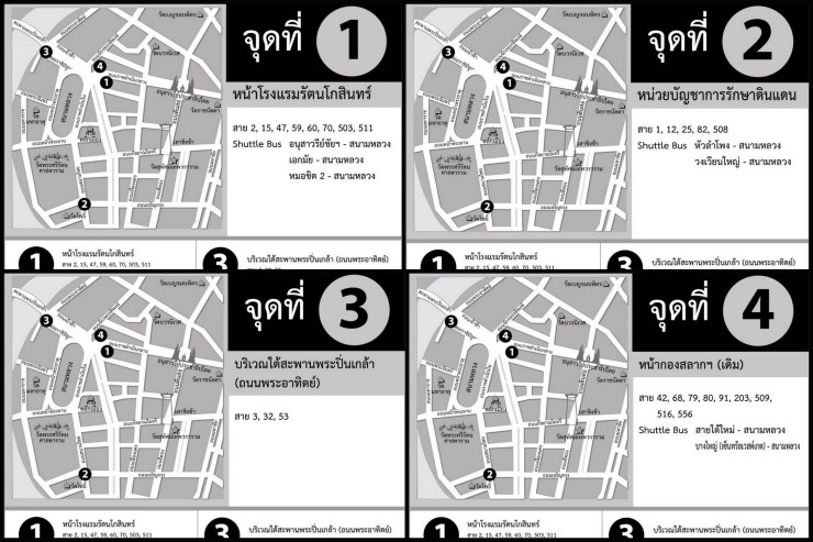 รายละเอียด 4 จุดจอดรถขสมก.และรถโดยสารอื่นเพื่อรับ-ส่งประชาชนบริเวณรอบสนามหลวง