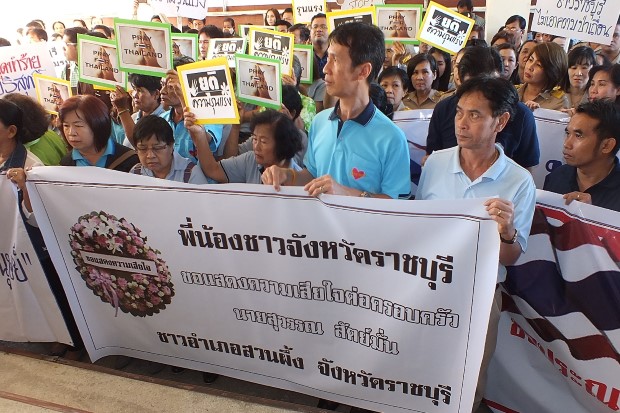เมื่อวันที่19 ส.ค.58 เวลา 08.30น. กลุ่มพลังมวลชนกว่า 200คน ไปรวมตัวที่ศาลากลางจังหวัดราชบุรี ถือป้ายต่อต้านความรุนแรงในเหตุการณ์ระเบิดที่แยกราชประสงค์ พร้อมกับประณามผู้ก่อเหตุ ที่ทำให้มีผู้เสียชีวิต และได้รับบาดเจ็บจำนวนมาก ซึ่งหนึ่งในจำนวนนี้มีนายสุวรรณ สัตย์มั่น เจ้าหน้าที่ศาลพระพรหม ซึ่งเป็นชาว อ.สวนผึ้ง จ.ราชบุรีตกเป็นเหยื่อในเหตุการณ์ครั้งนี้ด้วย