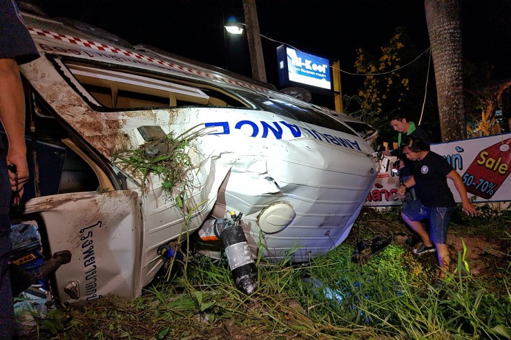 เมื่อคืนวันที่ 4 ก.ย.ที่ผ่านมา ร.ต.อ.มงคล ลารินทา ร้อยเวร(สอบสวน)สภ.เมืองปราจีนบุรีได้รับแจ้งจากหน่วยกู้ภัยสว่างบำเพ็ญธรรสถาน จ.ปราจีนบุรีเกิดอุบัติเหตุรถตู้ฉุกเฉินรับส่งผู้ป่วย รพ.กบินทร์บุรี(1669) ยี่ห้อโตโยต้าสีขาวหมายเลขทะเบียน กฉ 2887 ปราจีนบุรีพลิกคว่ำ มีคนขับขี่พร้อมผู้โดยสารทั้งหมด รวม5 คนได้รับบาดเจ็บ ประกอบด้วย นายปภาวิณ รุ่งวิสัย อายุ 46 ปี พนักงานขับรถ พร้อมคนไข้ที่โดยสารมาด้านหลังใส่ท่อเครื่องช่วยหายใจ คือนายเดชา มัธยมสมบูรณ์ อายุ 42 ปี นอกจากนี้มีพนักงานพยาบาลผู้ช่วยดูแลผู้ป่วย ที่นั่งมาพร้อมคนไข้ชื่อนางจินต์ชุตา กองแก้ว อายุ 47 ปี และญาติของผู้ป่วยอีก 2 คน คือนางอรอุมา เจริญสุข อายุ 40 ปี และ นางนาตยา มัธยมสมบูรณ์ อายุ 44 ปี เหตุเกิดบริเวณถนนสายปราจีนตคาม (ปราจีนบุรี –ประจันตคาม) หรือ สาย 3452 หมู่ 3 ต.บางบริบูรณ์ อ.เมืองปราจีนบุรี จ.ปราจีนบุรี โดยหน่วยกู้ภัย ได้รีบนำผู้รับบาดเจ็บทั้งหมดส่งห้องผู้ป่วยฉุกเฉิน รพ.เจ้าพระยาอภัยภูเบศรก่อนหน้านี้ จึงรายงานผู้บังคับบัญชาตามลำดับชั้นและไปตรวจสอบ