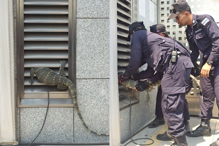 ปทุมธานี-ตัวเงินตัวทองโผล่วัดพระธรรมกายวิ่งออกประตู7พยายามวิ่งหนีหัวติดช่องระบายอากาศตำรวจสงสารช่วยกันดึงจนปลอดภัยแล้ว