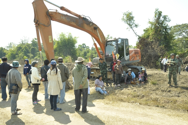 ชาวบ้านขวางรถแบคโฮปรับดินสร้างแนวรั้วม.สุรนารี