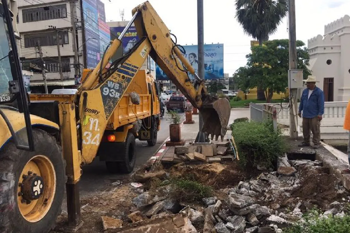โคราชขุดฟุตปาธระบายท่วมทุ่มงบ10ล้านบาทวางท่อผลักดันน้ำ