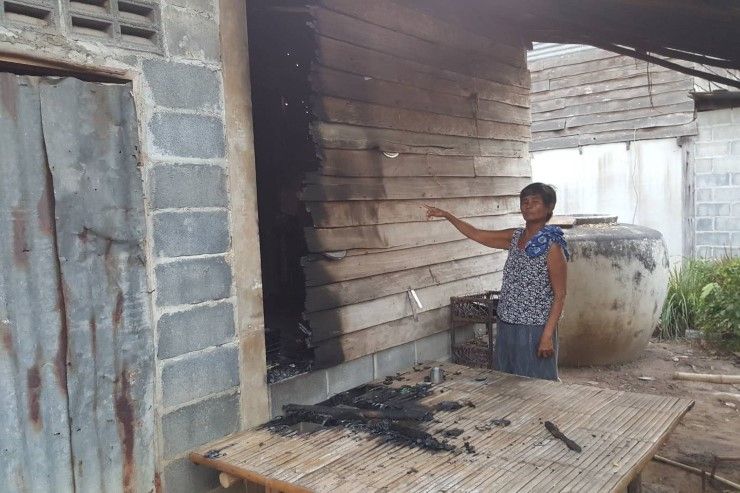 นายหัส  โพธิ์เงิน เจ้าของบ้านที่ถูกจุดไฟเผา เปิดเผยว่า เหตุการณ์ครั้งนี้อาจเกิดจากสาเหตุที่บุตรชายไปยืมเงินนายอาทิตย์  จักรคุ้ม ซึ่งเป็นผู้ก่อเหตุเป็นเงิน 10,000 บาท โดยที่บุตรชายก็เป็นเพื่อนกับนายอาทิตย์ ผู้ก่อเหตุ   แต่ไม่ทราบว่าบุตรชายนำเงินไปทำอะไร แต่พอทราบมาว่าบุตรชายรับปากว่าจะไปรับจ้างกรีดยาง ให้นายอาทิตย์เพื่อเป็นการล้างหนี้ เหมือนเป็นการจ่ายค่าแรงล่วงหน้า  หลังจากนั้นไม่รู้ว่าบุตรชายได้ไปกรีดยางให้นายอาทิตย์ หรือไม่  จนมาเกิดเหตุดังกล่าวขึ้น  ซึ่งหลังเกิดเหตุก็ได้แจ้งความให้ดำเนินคดีกับผู้ก่อเหตุให้ถึงที่สุด เพราะเป็นการก่อเหตุอย่างอุกอาจตอนกลางวันแสกๆ โดยไม่เกรงกลัวกฎหมาย