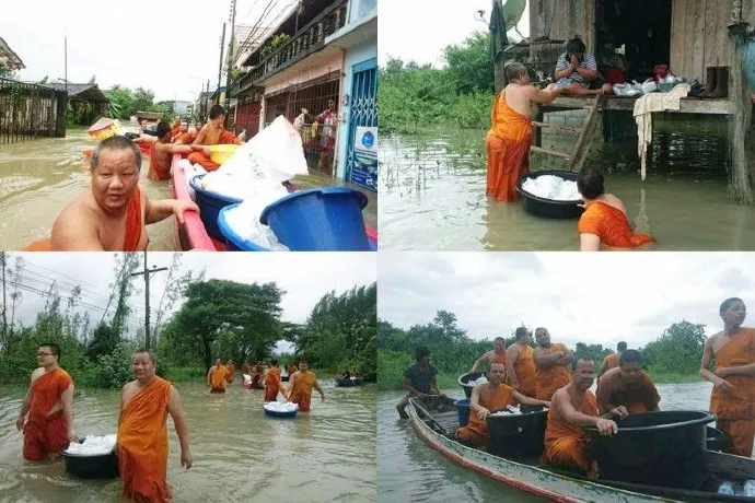 โดยพระ และเณร จากเครือข่ายพระธรรมทูตอาสาจังหวัดสงขลา นำโดย พระปลัดนรุตม์ชัย อภินนฺโท ประธานเครือข่ายพระธรรมทูตอาสาจังหวัดสงขลา ได้นั่งเรือ บรรทุกอาหาร สิ่งของ และน้ำดื่มไปช่วยเหลือชาวบ้าน พร้อมด้วยประชาชนจิตอาสาจำนวนหนึ่งที่เดินทางไปด้วย ซึ่งตลอดเส้นทางมีน้ำท่วมสูงและมีลมแรงบางจุด