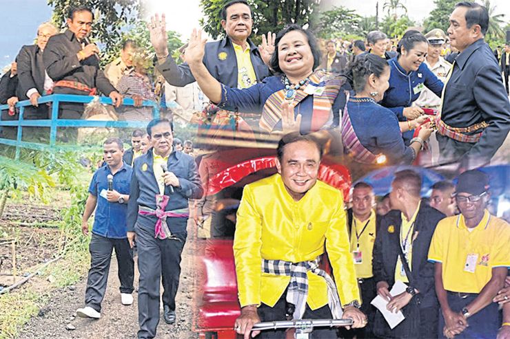 แม้จะออกตัวว่าไม่ใช่การหาเสียง ไม่มีนัยทางการเมือง แต่การที่ พล.อ.ประยุทธ์ เดินสายครม.สัญจรแต่ละครั้งกวาดคะแนนนิยมให้กับรัฐบาล และ บรรดานักการเมืองพาเหรดมาเข้าพบนับไม่ถ้วน